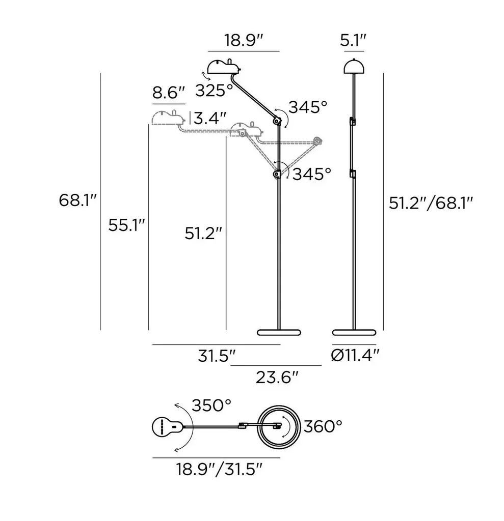 Joe Colombo 'Topo' Articulating Floor Lamp for Stilnovo in Red.Founded in 1946 in Milan, Stilnovo was one of the most innovative lighting companies in Italy during the Midcentury era, producing iconic pieces by such luminaries as Joe Colombo, Angelo Mangiarotti, Ettore Sottsass, Gaetano Scolari, Piero Castiglioni, Bruno Gatta and others. Stilnovo was relaunched in 2019 with a commitment to faithfully re-editioning its legendary designs with uncompromising attention to detail, materials and craftsmanship.The 'Topo' floor lamp, originally designed by Joe Columbo in 1970, has long been recognized as an iconic and timeless design. The reflector's shape mirrors that of a standard light bulb while sitting atop an adjustable arm. Reminiscent of the vents on a 1960's sports car, five slots were created atop the reflector to dissipate heat from original incandescent bulbs while preventing direct glare. A black handle permits the user to adjust the reflector to a variety of angles making this light ideal for any task, as does the jointed arm. A staple of Italian lighting design, this version is meticulously executed to Stilnovo's exacting standards in powder-coated metal.Price per item. Available to order in unlimited quantities in choice of green, white, black, red or chrome. Also available as a table lamp in a separate listing. This listing is for the Topo floor lamp in red.Accommodates 1x 7W max standard medium base (e26) LED bulb (not included). Dimmable. Ships with 8.1' black cable. IP20 rated. UL listed.In stock lead time 6-8 weeks. Out of stock can add an additional 8 weeks or more. Please note that lead times and inventory availability are subject to change without notice. For time sensitive orders, please contact us for current lead times prior to purchasing.Made to order. All sales are final.