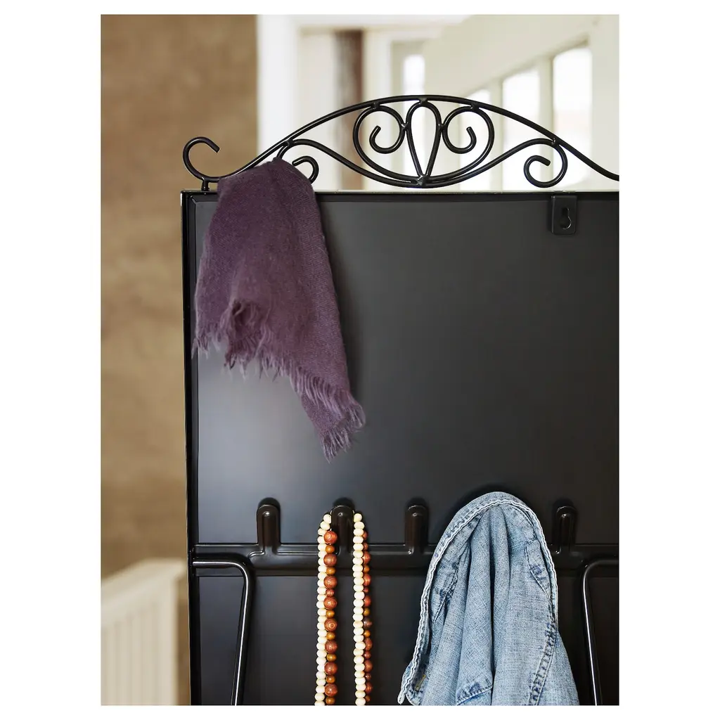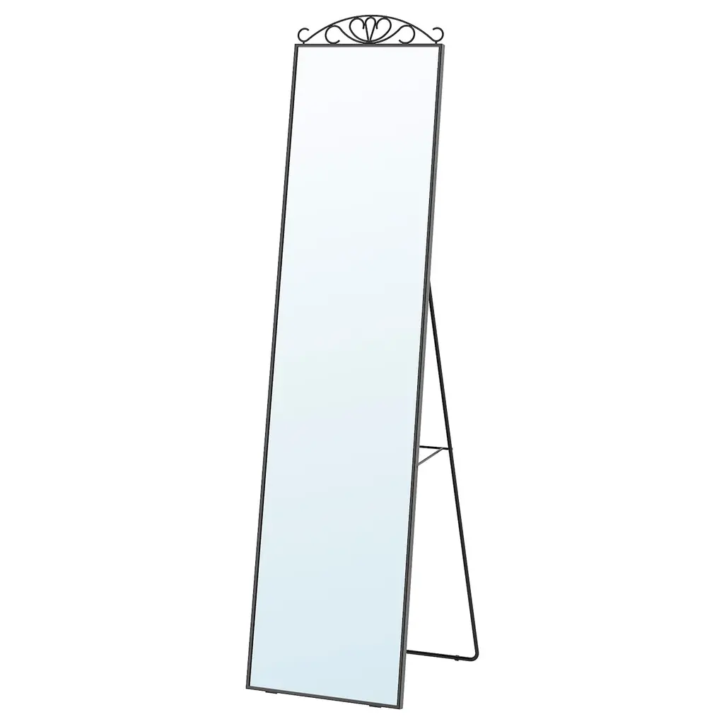 KARMSUND Floor mirror - black 15 3/4x65 3/4 ". Tired in the mornings? You can save time by hanging tomorrow’s outfit behind the mirror. To avoid clothes piles and extra loads of laundry, you can hang used clothes behind the mirror. You can place the mirror on the floor or hang it on the wall.