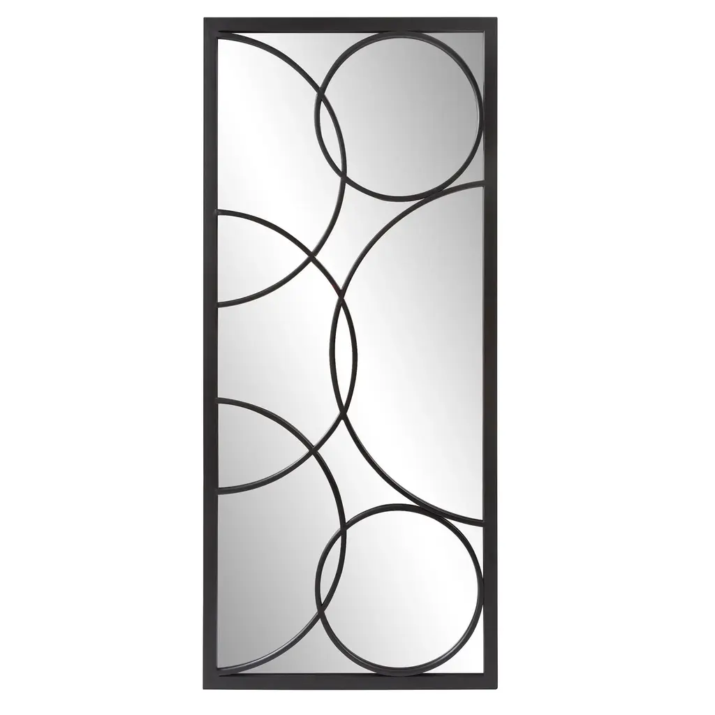 The Black Metal Circle Mirror Beautifully finished in matte black, this mirror conjures up images of glamorous settings in the art deco period. The curved lines and the intersecting circled design create just the right ambience if hung individually or in a pair. The mirror brings an updated modern twist to a style that has never gone away. Dimensions: 21W x 47L x 2Thick - Inner Dimensions: 19W x 45H Finish: Matte Black Designer floor samples & new product from one of the hottest To The Trade & Retail Home Furnishings showrooms in the country. Located in Chicago's chic Roscoe Village, Kenneth Ludwig Chicago carries the industries best furniture & accessory brands. Always fresh, always inspiring. Quite often ( due to a discontinued style, fabric or frame ) they must sell off their showroom floor samples. You receive first quality pieces at amazing prices. Check back weekly for new inventory added.