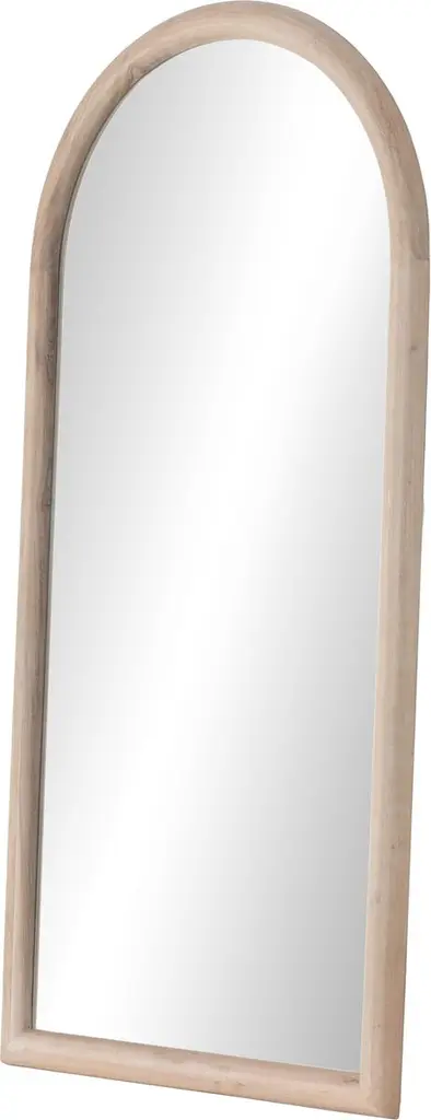 Set in a frame crafted of richly figured acacia, this arched mirror shows how sophisticated simplicity can be.