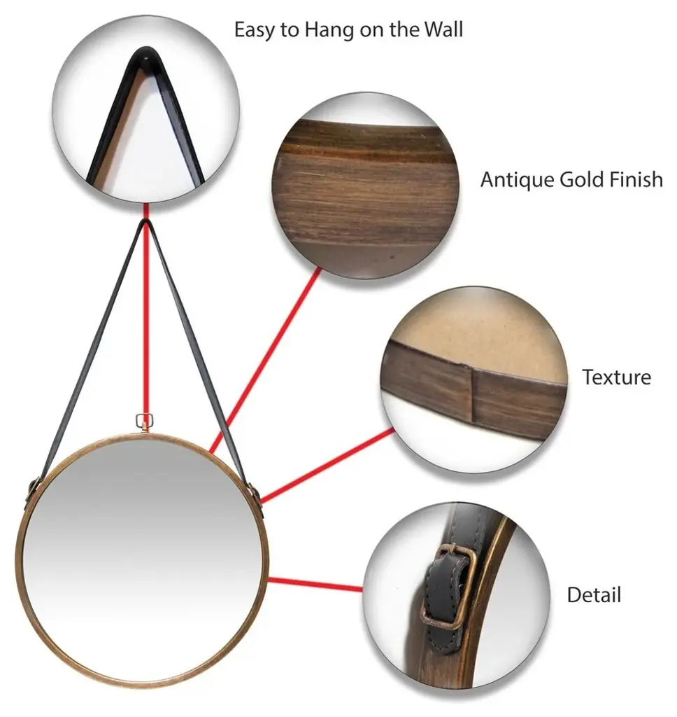 Bursting with practical style and rustic charm, you''ll love the way these decorative Farmhouse m mirrors complement your space. This decorative mirror is perfect to add to your gallery wall, in your living room, above your entryway table or at the end of your hallway. On the Farmhouse Circle, the leather strap attaches to a rustic metal frame ending in a charming buckle while the Farmhouse Square is accented by real twine rope adding to the charm.We all have dead wall spaces in our houses. Instantly spruce up one such space in your bedroom or guest bedroom using this mirror flanked by wall sconces or candle holders. Spanning an impressive 32n inches in height including the rope, this is a trendy and chic accent piece for both young and old.No matter your decor of choice, the Farmhouse mirror comes in circle and rectangle bringing simple style into any room without taking up any floor space. This hanging wall mirror will be the perfect finishing touch to your home. We think this will be a refreshing pick for someone transitioning into a new apartment or even for someone looking to stylize a dorm room.
