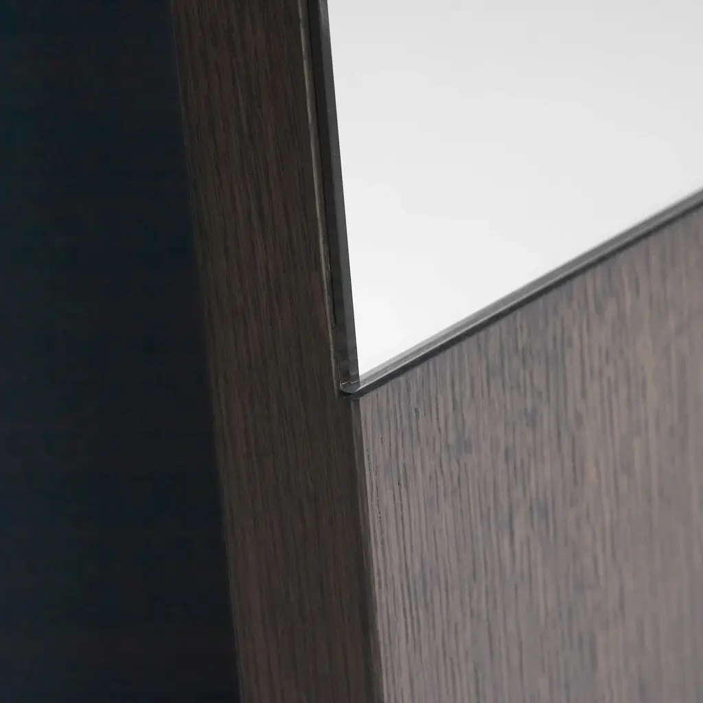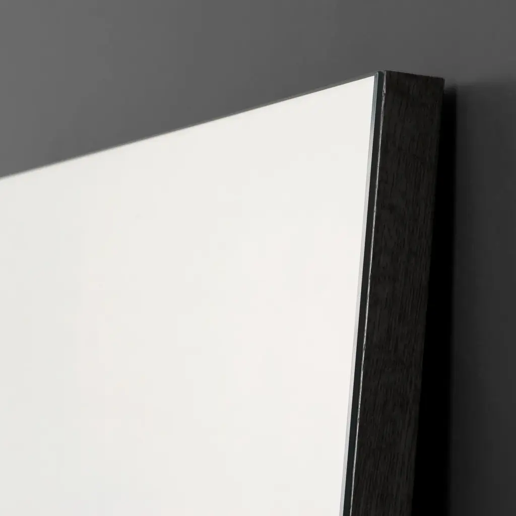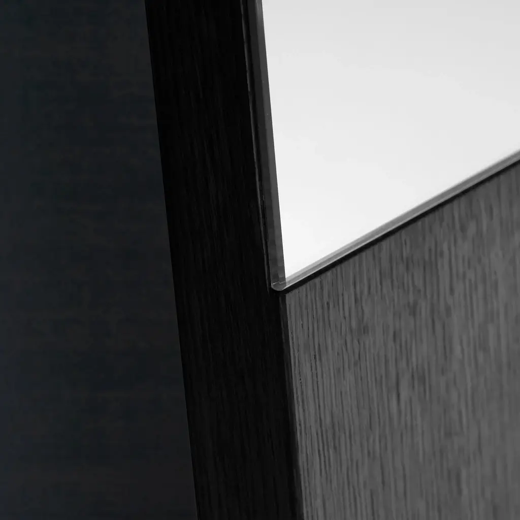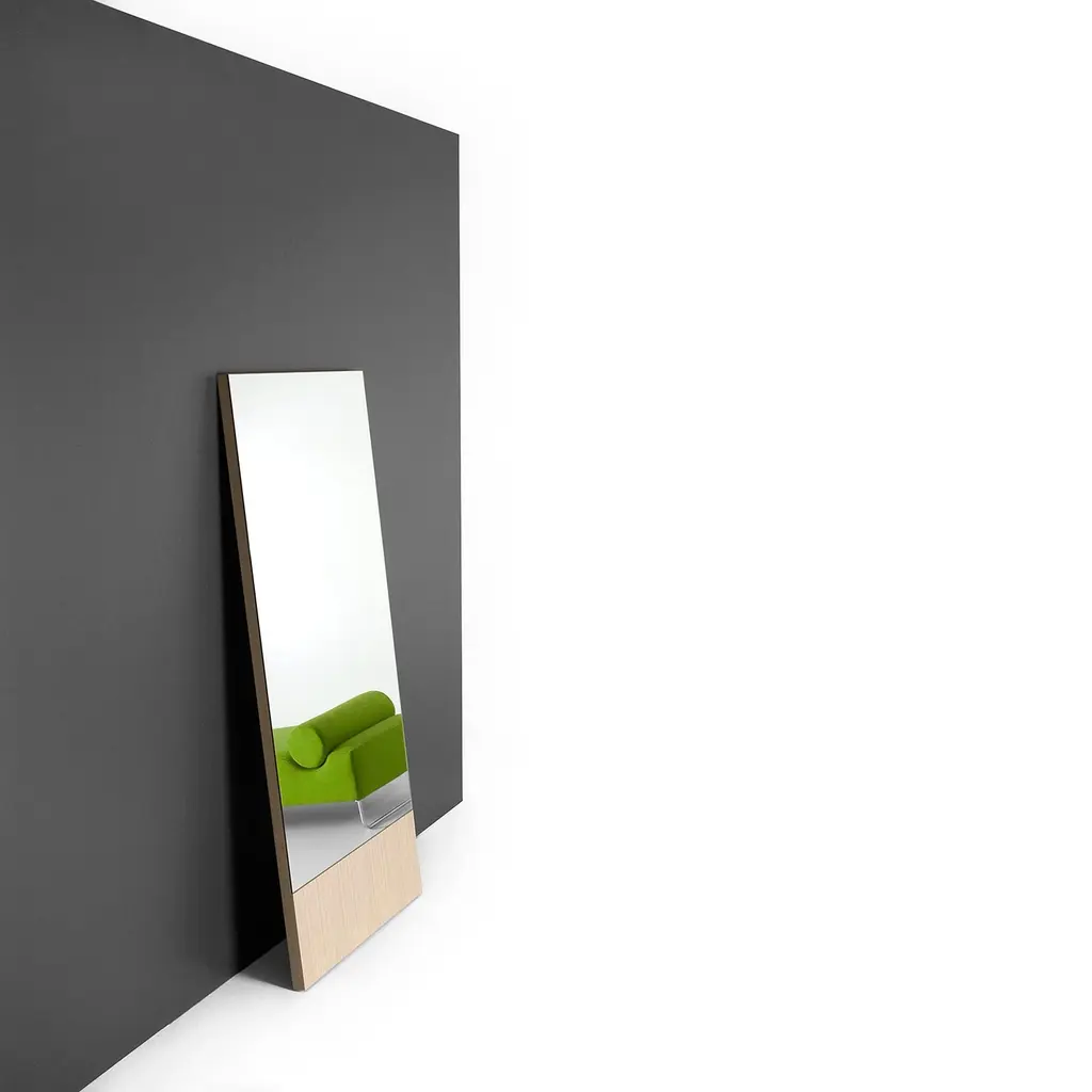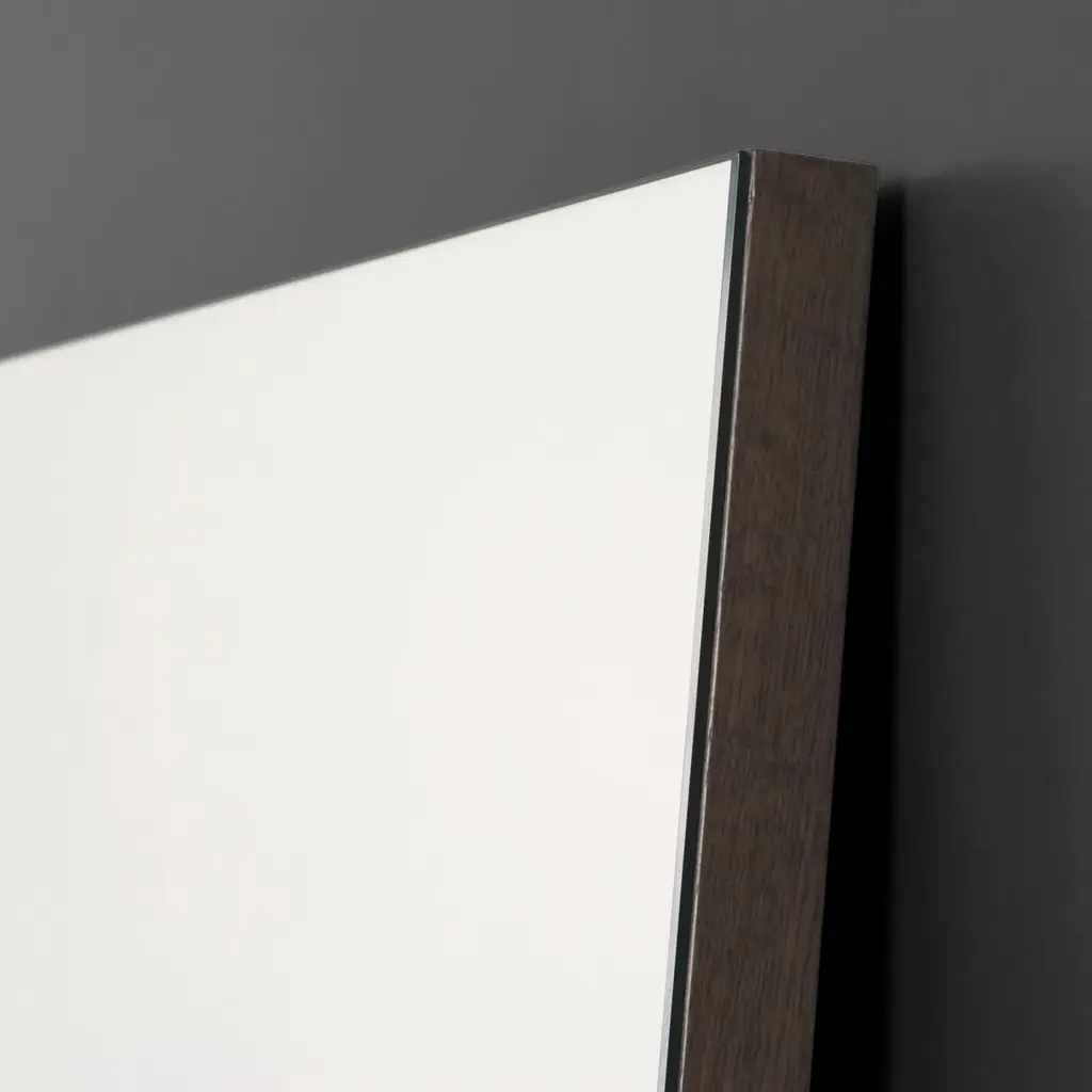 Lean seemingly floats, with a band of wood raising the full-length reflection off the floor. The mirror rests gracefully against the wall at a 5 degree angle, on inset rubber feet that protect the frame and the floor. (Each mirror includes a mounting safety bracket, which securely holds it to the wall.) The surface is seamless, with the wood panel the same depth as the glass, and core-panel construction with a veneer overlay keeps the mirror lightweight. Available in a choice of sizes and wood finishes with clear lacquer finish.