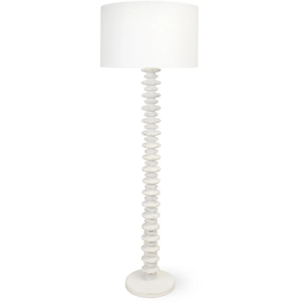 The Leroy Floor Lamp is crafted of wood with a white washed finish and a drum shade. Material: wood. Wattage: 100W Max. Bulb Type: A. Socket Type: E26. The hand crafted details produced by a skilled artist lends itself to a unique technique and will vary slightly. COO: India.Features:Lamp body is constructed with woodIncludes a off-white drum shaped, linen lamp shadeFeatures a 3 way turn knob light switchBulb type a required, but not includedEasy assembly - just attach harp, finial and shadeIncludes a clear 138 inch cord for easy placementFor over a century, Bassett Mirror has been synonymous with style and quality, transforming homes with its sophisticated and timeless designs. With a wide-ranging collection of furniture, lighting, mirrors, and art, Bassett Mirror seamlessly blends modern style with classic appeal. From rustic modern to luxe glam, each piece is thoughtfully crafted to inspire and elevate any space. Committed to exceptional value and customer care, Bassett Mirror makes it easy for homeowners to create beautiful, personalized interiors with confidence.