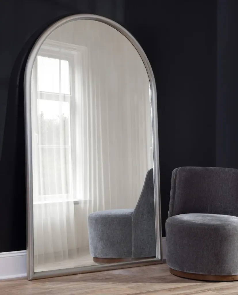 The Malia Floor Mirror showcases the timeless elegance of the Louis Philippe Style, characterized by its arched top and squared base. Finished in a radiant silver leaf finish, this mirror effortlessly blends classic charm with modern sophistication. Its arched silhouette adds a touch of refinement to any space, making it a versatile and stylish addition to your home decor.Features:Modern design with timeless sophisticationArched design adds an elegant touch to any spaceSleek silver leaf finish adds a stylish flairPerfect accent to brighten your spaceFor over a century, Bassett Mirror has been synonymous with style and quality, transforming homes with its sophisticated and timeless designs. With a wide-ranging collection of furniture, lighting, mirrors, and art, Bassett Mirror seamlessly blends modern style with classic appeal. From rustic modern to luxe glam, each piece is thoughtfully crafted to inspire and elevate any space. Committed to exceptional value and customer care, Bassett Mirror makes it easy for homeowners to create beautiful, personalized interiors with confidence.