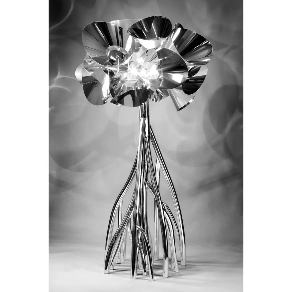 Mangrovia EM Floor Lamp in Stainless Steel & Aluminum by Barberini & GunnellLimited Edition of 15 + 2 AP + 1 p.Dimensions: Ø 133 x H 245 cm. Materials: Carbon and aluminium fiber, mirror-polished stainless steel.All our lamps can be wired according to each country. If sold to the USA it will be wired for the USA for instance. Limited Edition, signed and numbered by the artists, comes with a Certificate of Authenticity. Please contact us. Please contact us.Barberini & Gunnell, founded in 2009 in Ancona, Italy by architects Francesco Barberini and Nina A. Gunnell, is the result of a philosophy, thinking of design and architecture as a work of art. The architectural and interior design activity carried out by ‘The Studio’ complements the creations of ‘The Atelier’, which are the result of an artistic playground and highly skilled craftsmanship, a place where artworks and sculptures come to life.The Studio Barberini & Gunnell designs high-end residential and retail spaces that are out of the ordinary and beyond fashion. Barberini & Gunnell creates refined, timeless, and harmonious environments by inserting collectible design, “talking pieces” that create unique and bespoke homes according to the client’s eclectic and aesthetic desires.The Atelier Barberini & Gunnell creates artworks and collectible designs, one-off pieces, and limited editions for a small niche of high-end projects; bespoke solutions for luxury and ultra-luxury projects all over the world.The choice of the most precious materials, the maniacal cure for detail is the basis of our modus operandi aiming to create timeless pieces, using marine grade stainless steel, brass, cast bronze, precious wood essences, marbles, onyxes, semi-precious gemstones, crystal glass, together with the most sophisticated technologies and quality craftsmanship.This allows us to work for clients like Four Seasons Hotels, The Ritz Carlton, Regent Seven Seas Cruises, Louis Vuitton, Cartier, Dior, Paramount Pictures, Peter Marino Architects, Sotheby’s, Bonhams, Foundation of Maestro Andrea Bocelli, Ridley Scott (House of Gucci) besides our private collectors and clients.Values such as sustainability, the use of natural materials, the rediscovery of eco-sustainable craftsmanship, and the protection of refined and ancient techniques that are increasingly being lost are the basis of the design.Barberini & Gunnell’s signature works are exhibited at international art fairs such as Art Basel Design//Miami, Art Miami, Art Basel Switzerland, PAD London, PAD Genève, PAD Paris, PAD Monaco, Salon Art+Design New York…