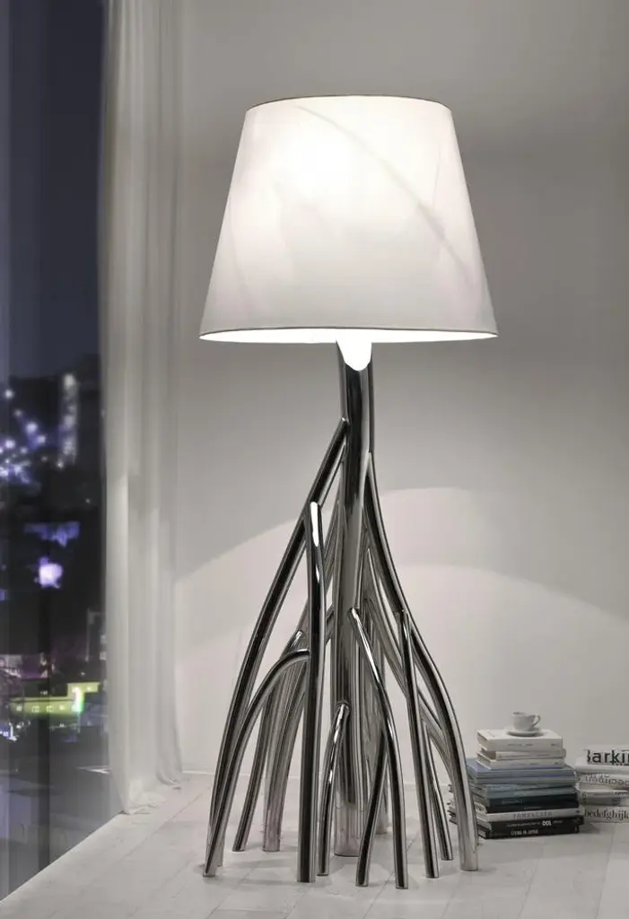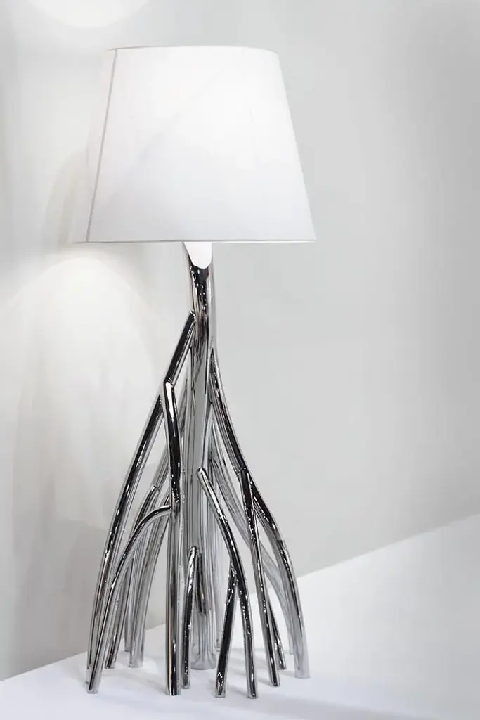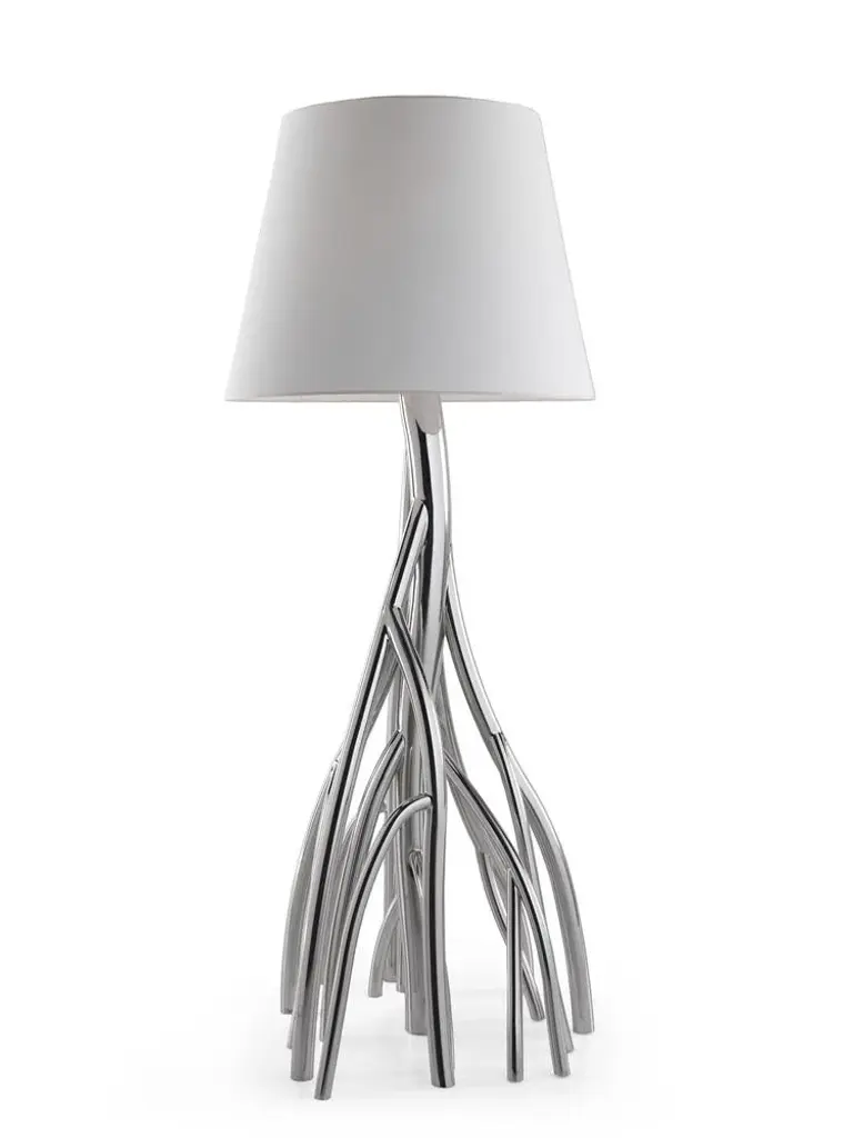 Mangrovia Floor Lamp In Polished Stainless Steel And Linen By Barberini & Gunnell