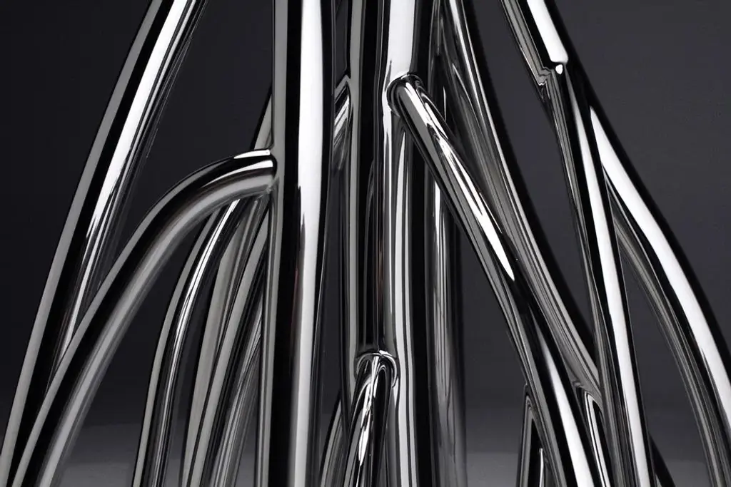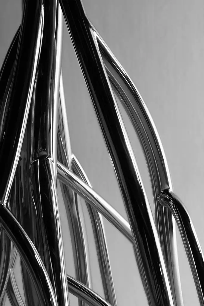 Mangrovia floor lamp in polished stainless steel & linen by barberini & gunnell limited edition of 15 + 2 ap + 1 p. Dimensions: ø 98 x h 210 cm. Materials: mirror-polished stainless steel and linen. Limited edition, signed and numbered by the artists, comes with a certificate of authenticity. up to 250v (europe/uk standard).