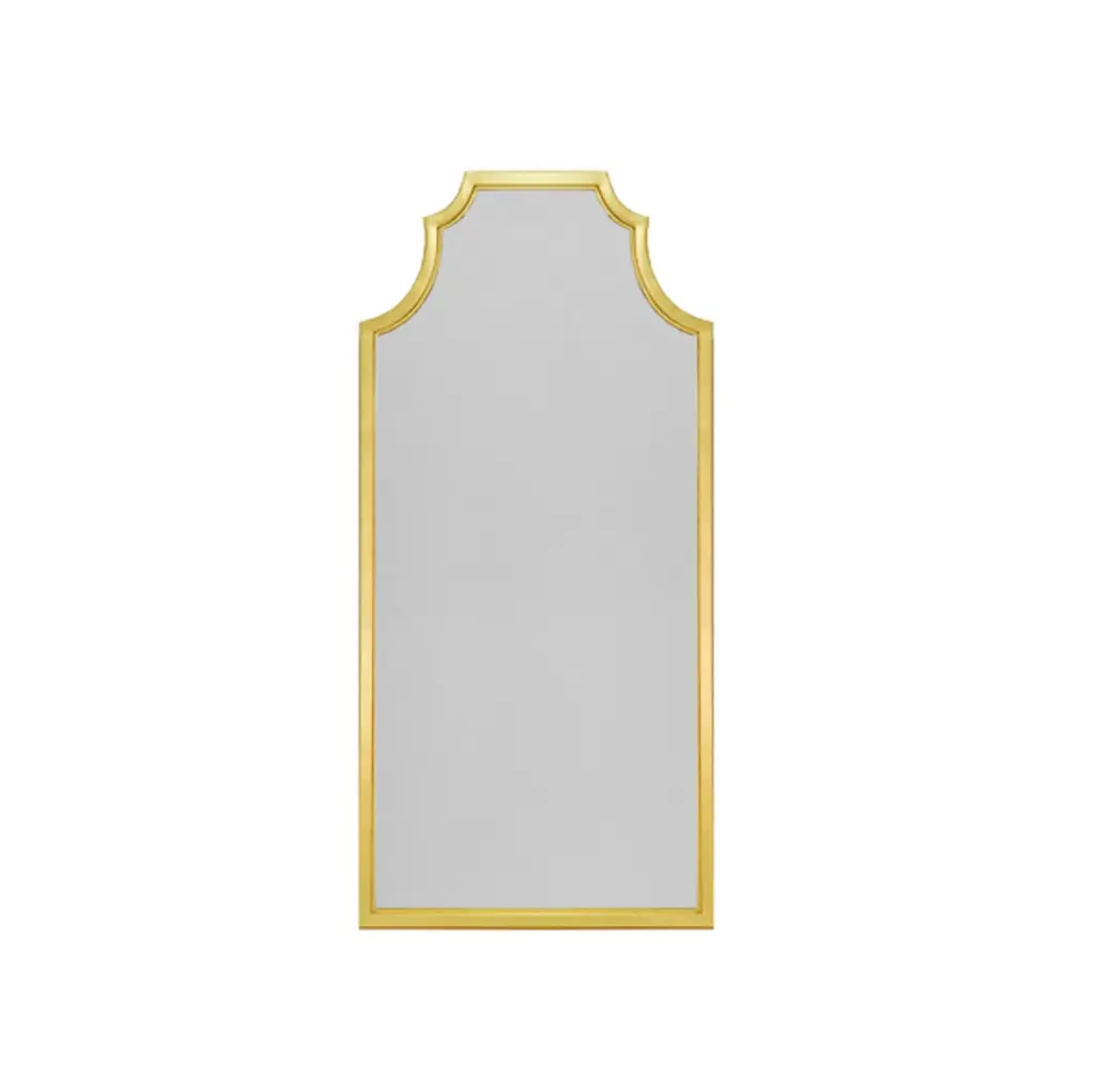 Defined by modern Asian design and elegant styling, our Finley pagoda style floor mirror is the essential finishing touch for your dressing room or grand foyer. Hand finished gold leaf frame evokes high style appeal. 26" W X 55" H X 1" D Width:26.00" Height:55.00" Depth:1.00"