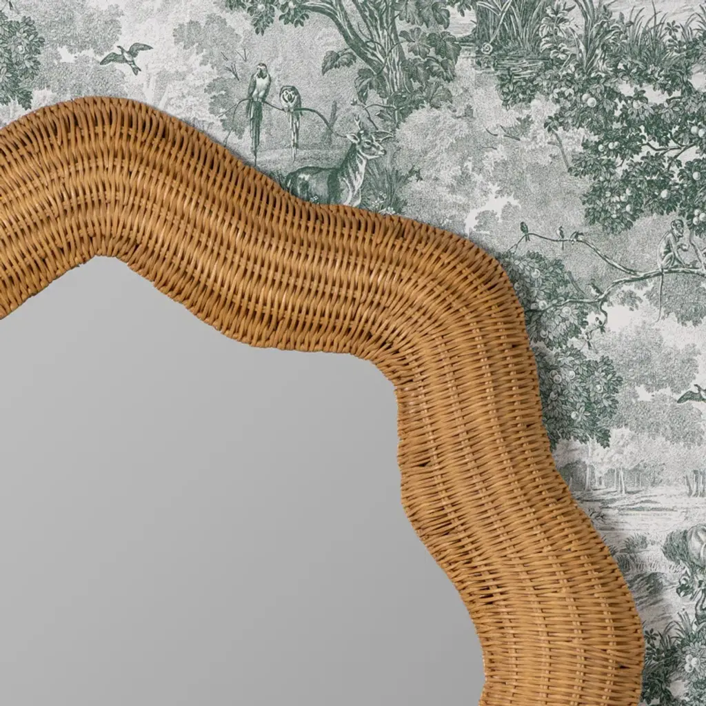 Solid acacia is smoked, shaped, and smoothed to bring a vintage art deco-inspired frame to this mirror.