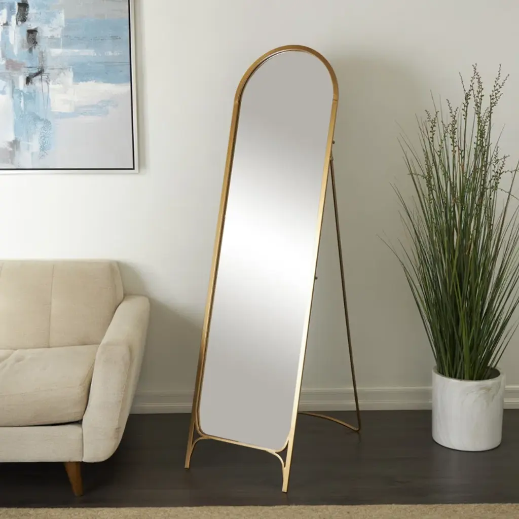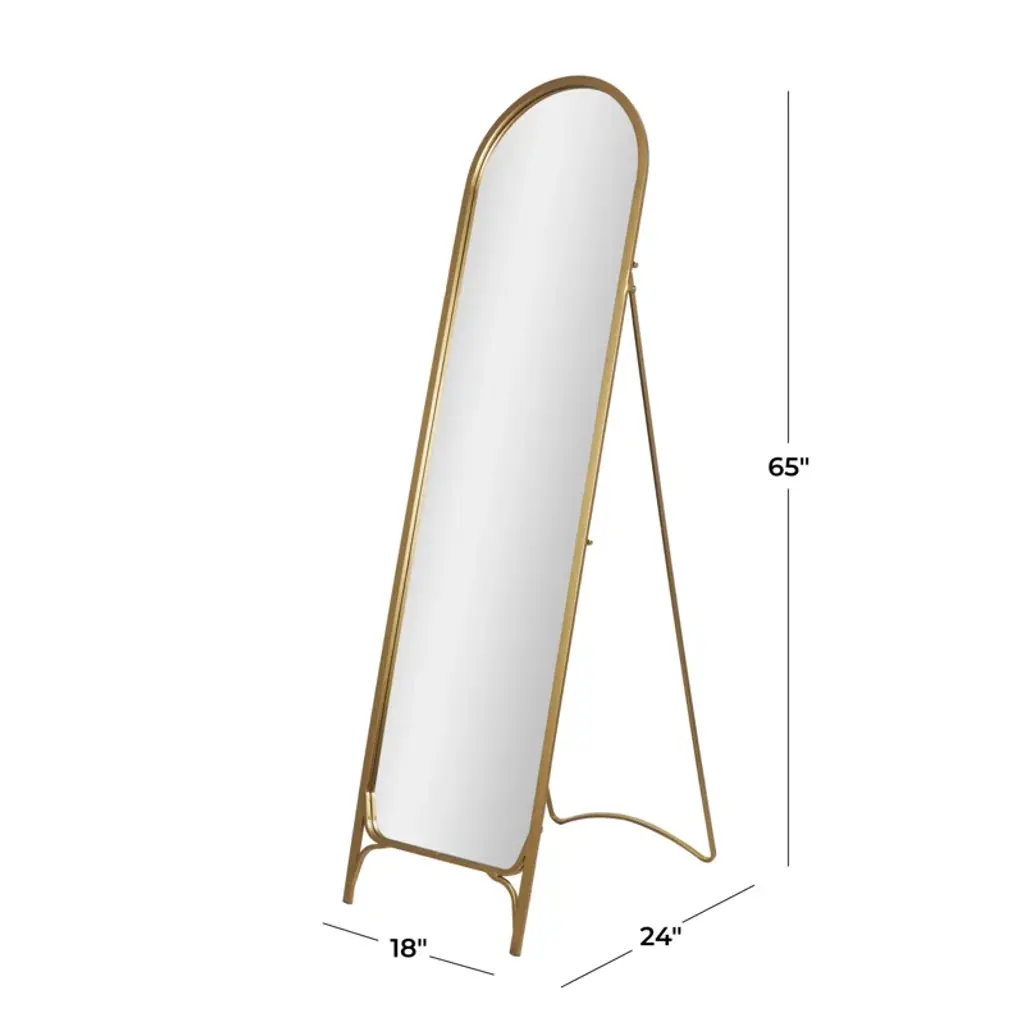 Metal Arched Freestanding Foldable Gold Floor Mirror