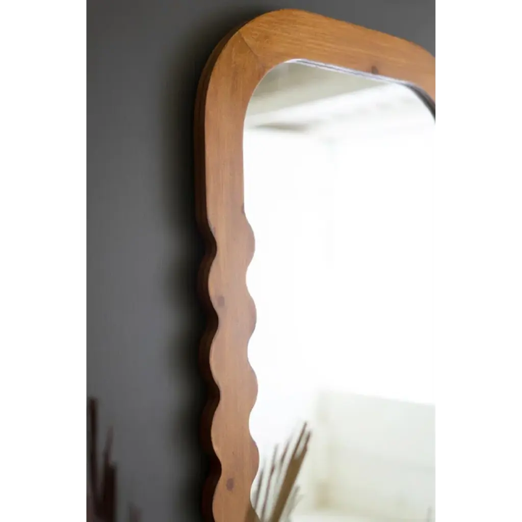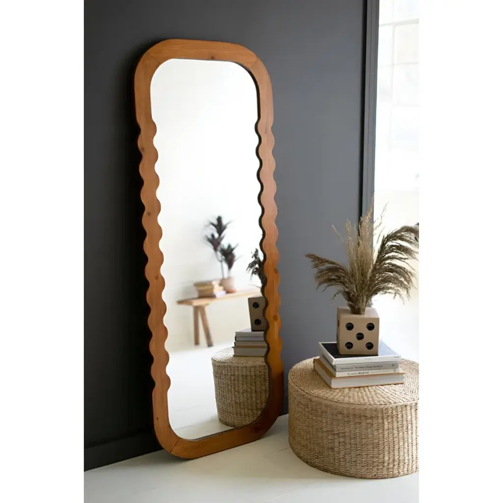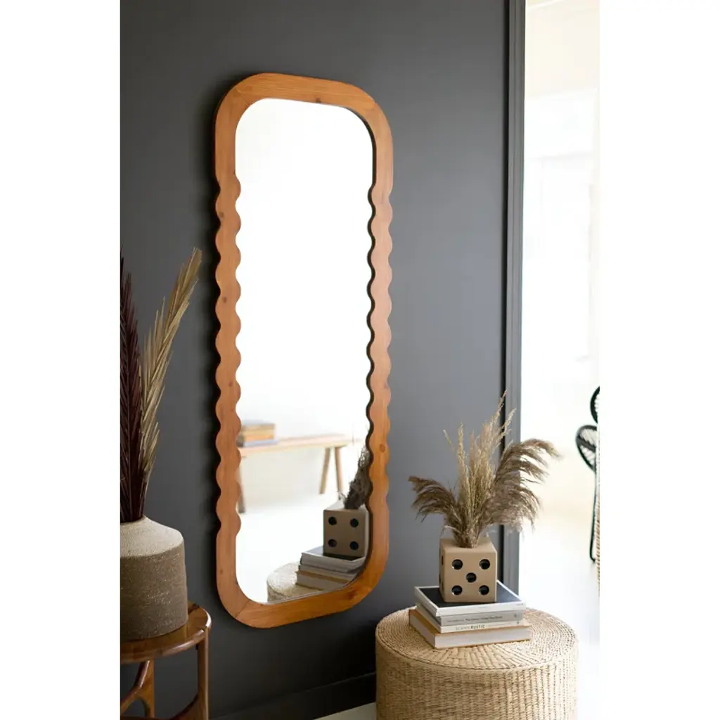 This wood-framed standing mirror is full-length fun. The squiggle frame makes it a natural choice for kids’ or guest rooms, and it’s sophisticated enough to prop in your fancy spaces. The neutral wood frame means it fits any decor style.