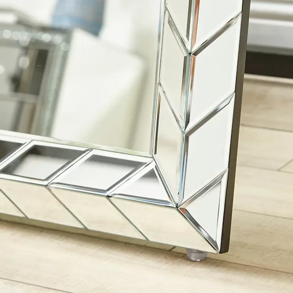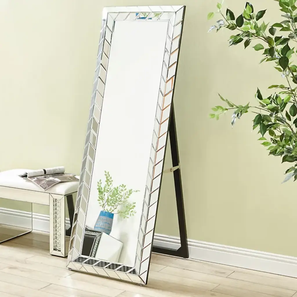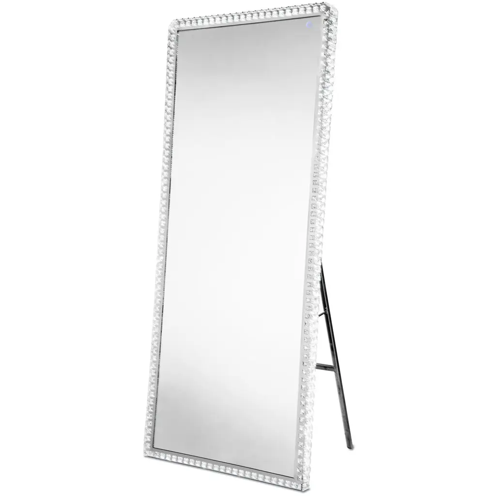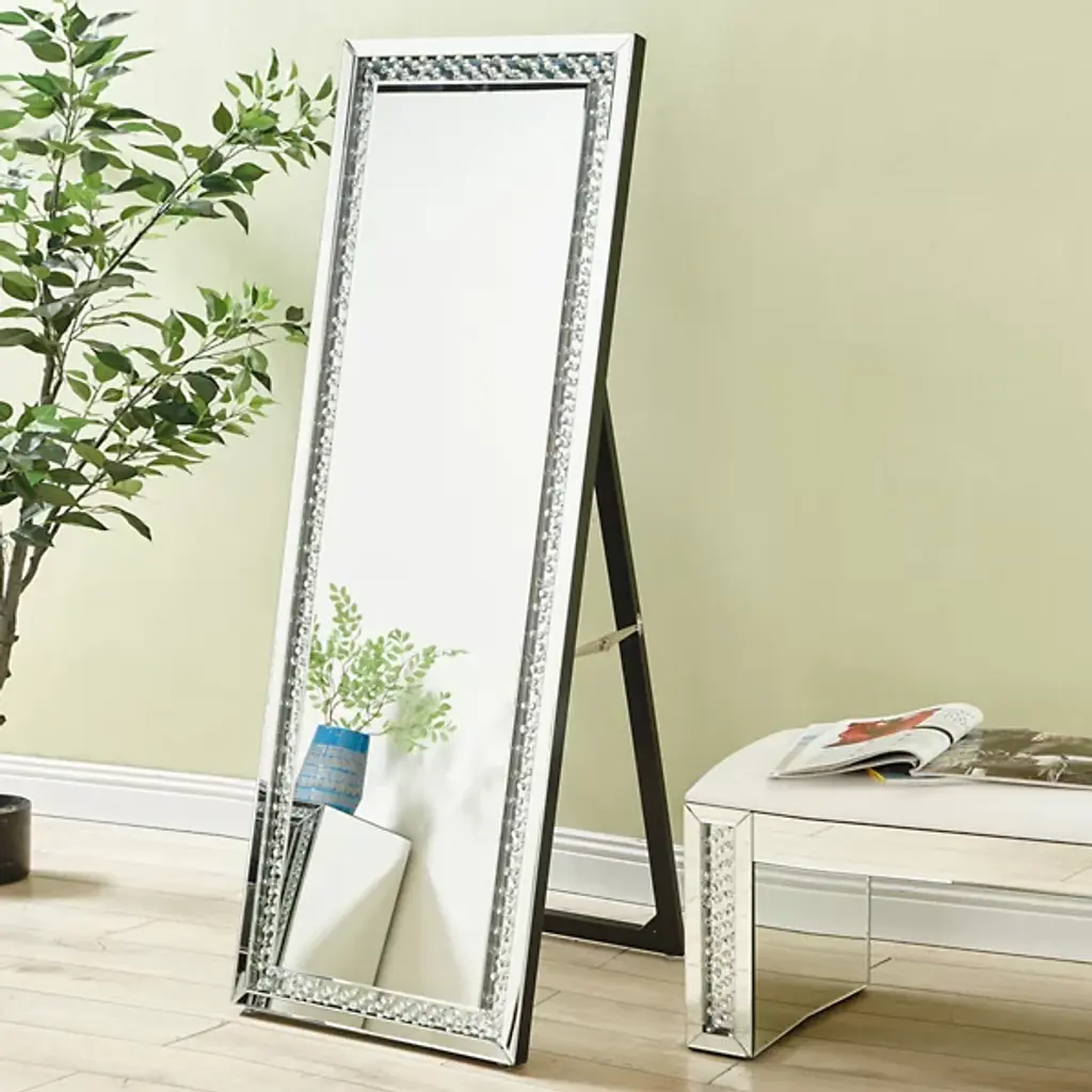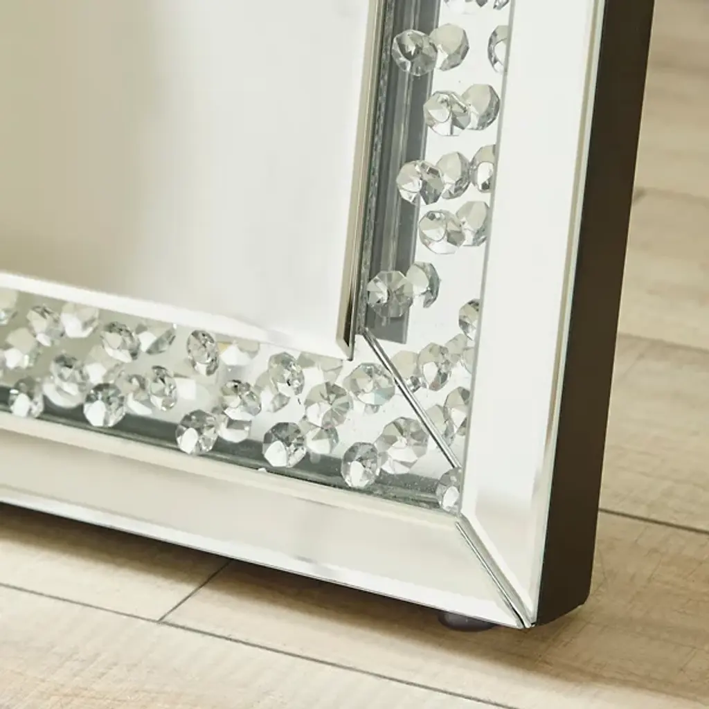 Transform your interiors with the Modern Sparkle Full Length Floor Mirror from Elegant Lighting. This stunning mirror showcases intricately cut beveled-edge crystal glass, enhanced by delicate crystal accents that form a striking pattern that adds texture. Its versatile folding frame allows the mirror to be mounted vertically or horizontally, creating glamor and sophistication.