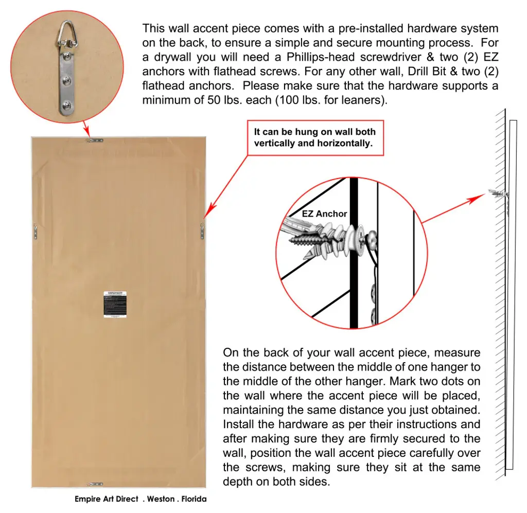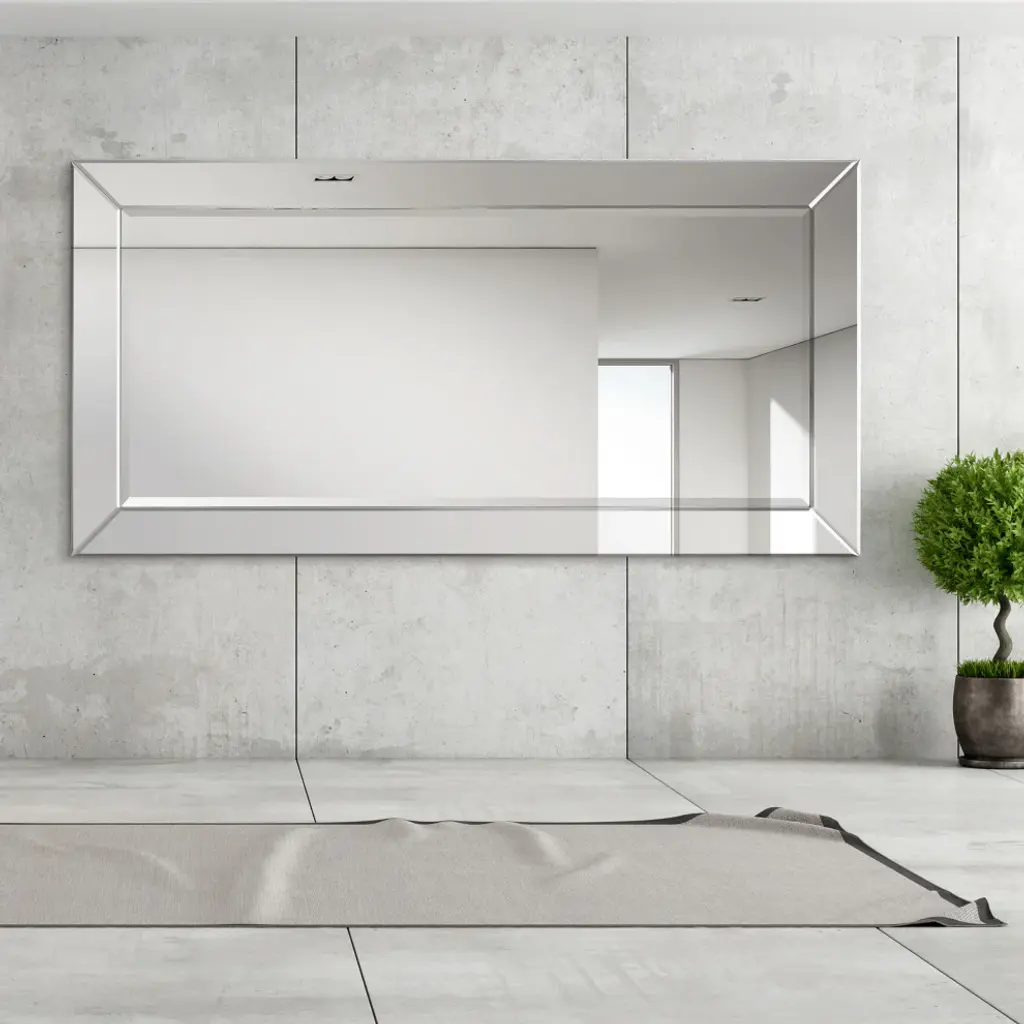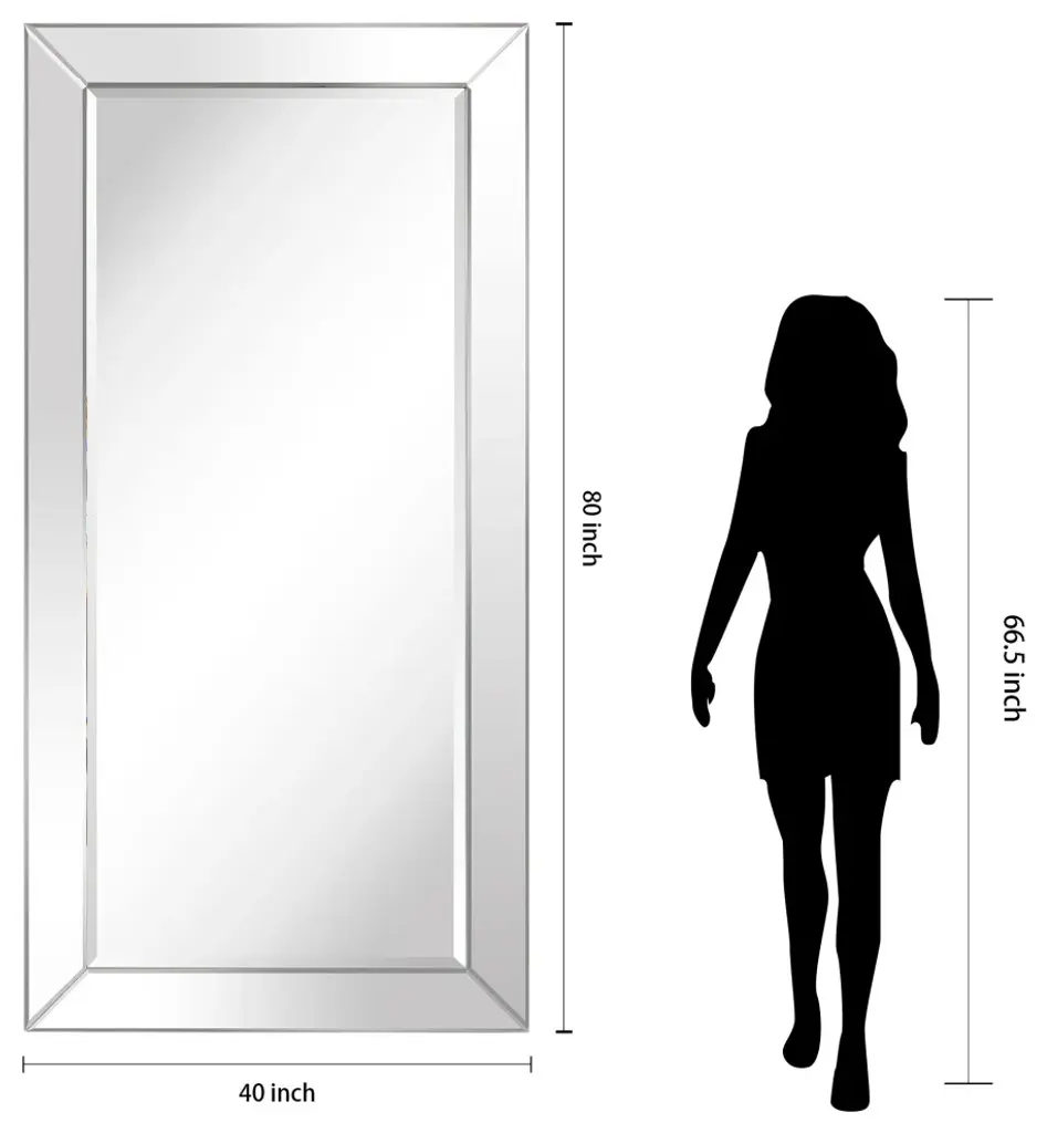 This leaner mirror stands at a sizeable 80 inches, large but not dominating. It will add light texture to a room while also proving very useful. The mirror has a slight bevel of just 1 inch to give it shape and help it to catch the eye. The mirror is built over a sturdy wooden frame. 4 Hooks are affixed to the back of the mirror so it is ready to hang right out of the box in either a horizontal or vertical orientation!