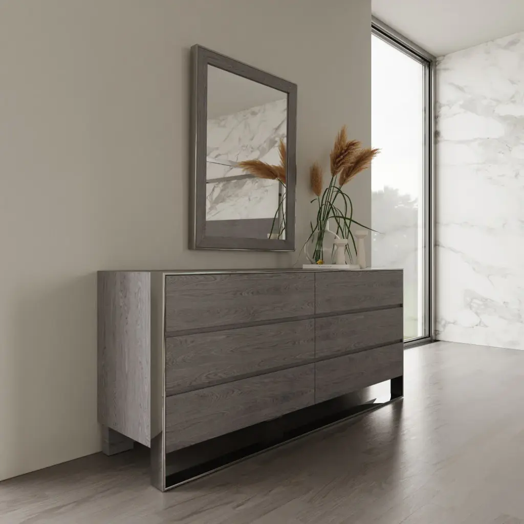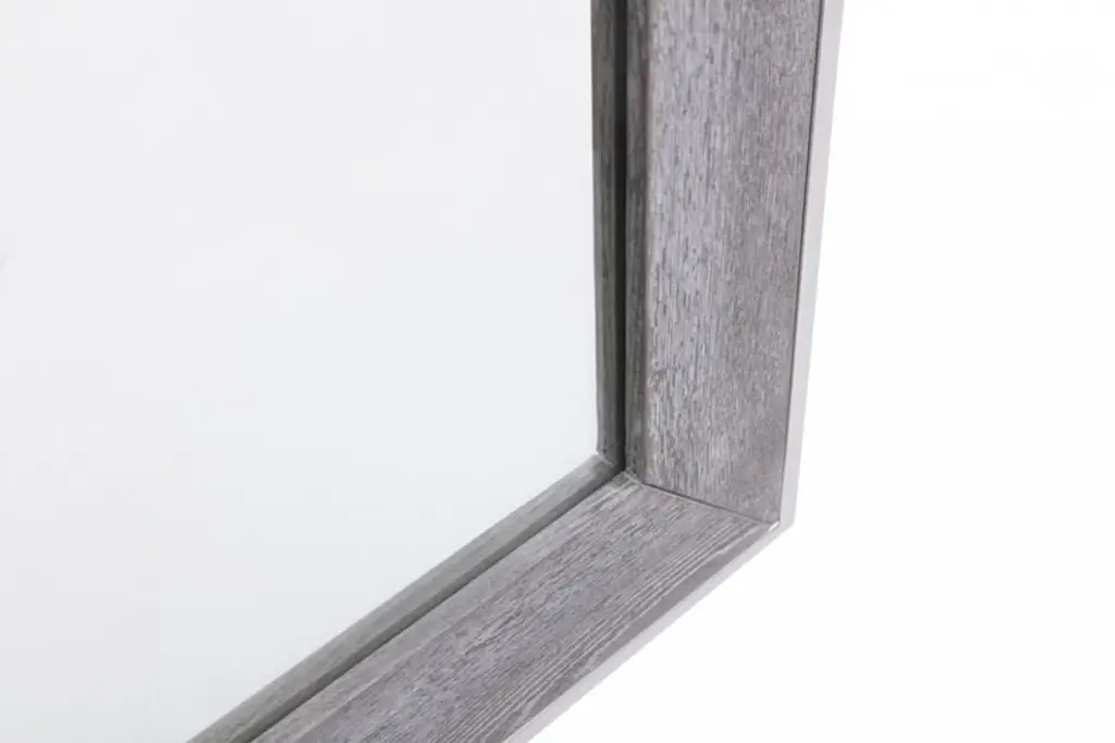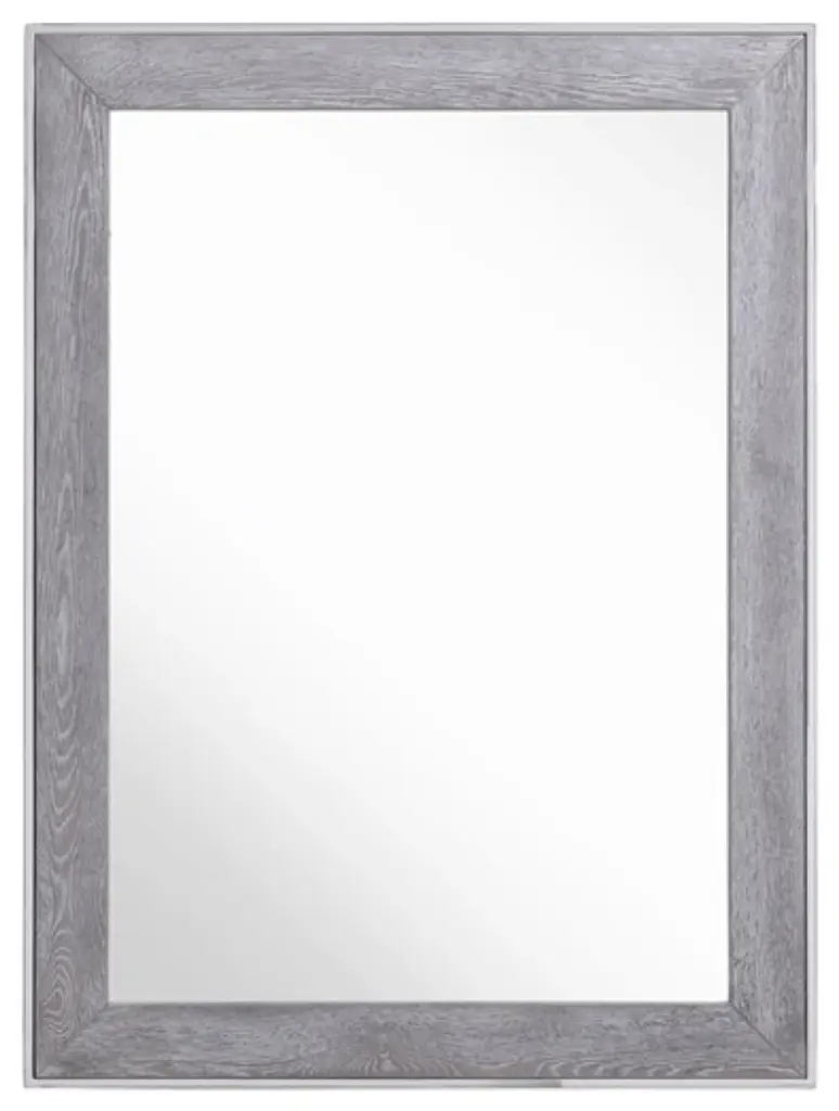 The clean lines of the Modrest Arlene Modern Grey Elm Mirror abound in refinement. Framed in polished stainless steel with grey Elm Veneer finish, this modern mirror can function as a wall mounted mirror or a floor leaner mirror in the bedroom, living room, or entryway.Grey Elm Veneer FinishPolished Stainless Steel FrameRectangular
