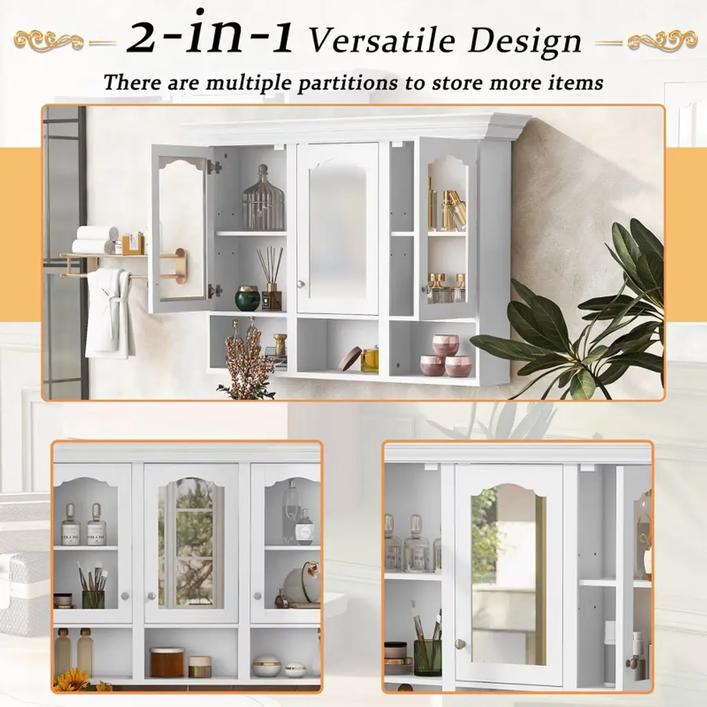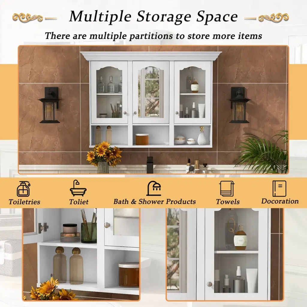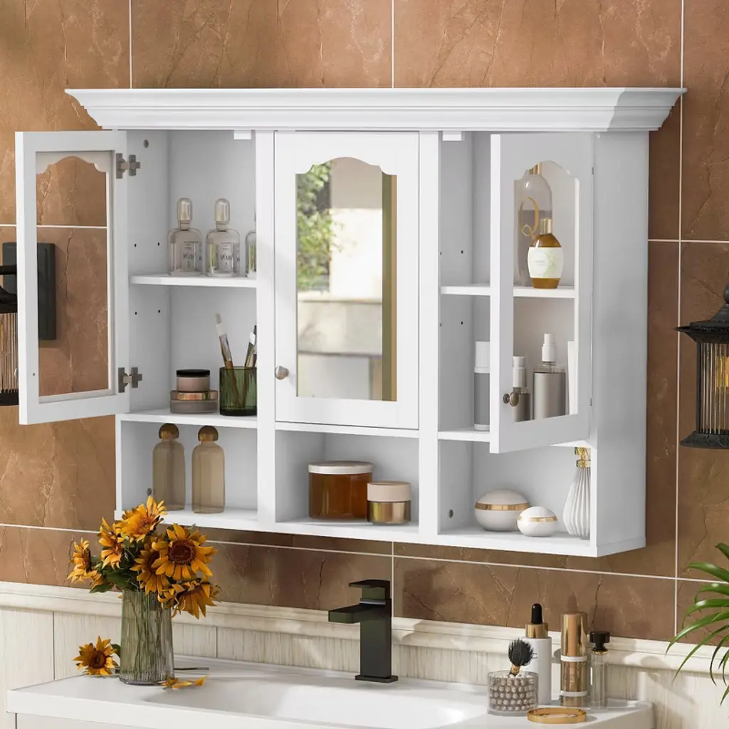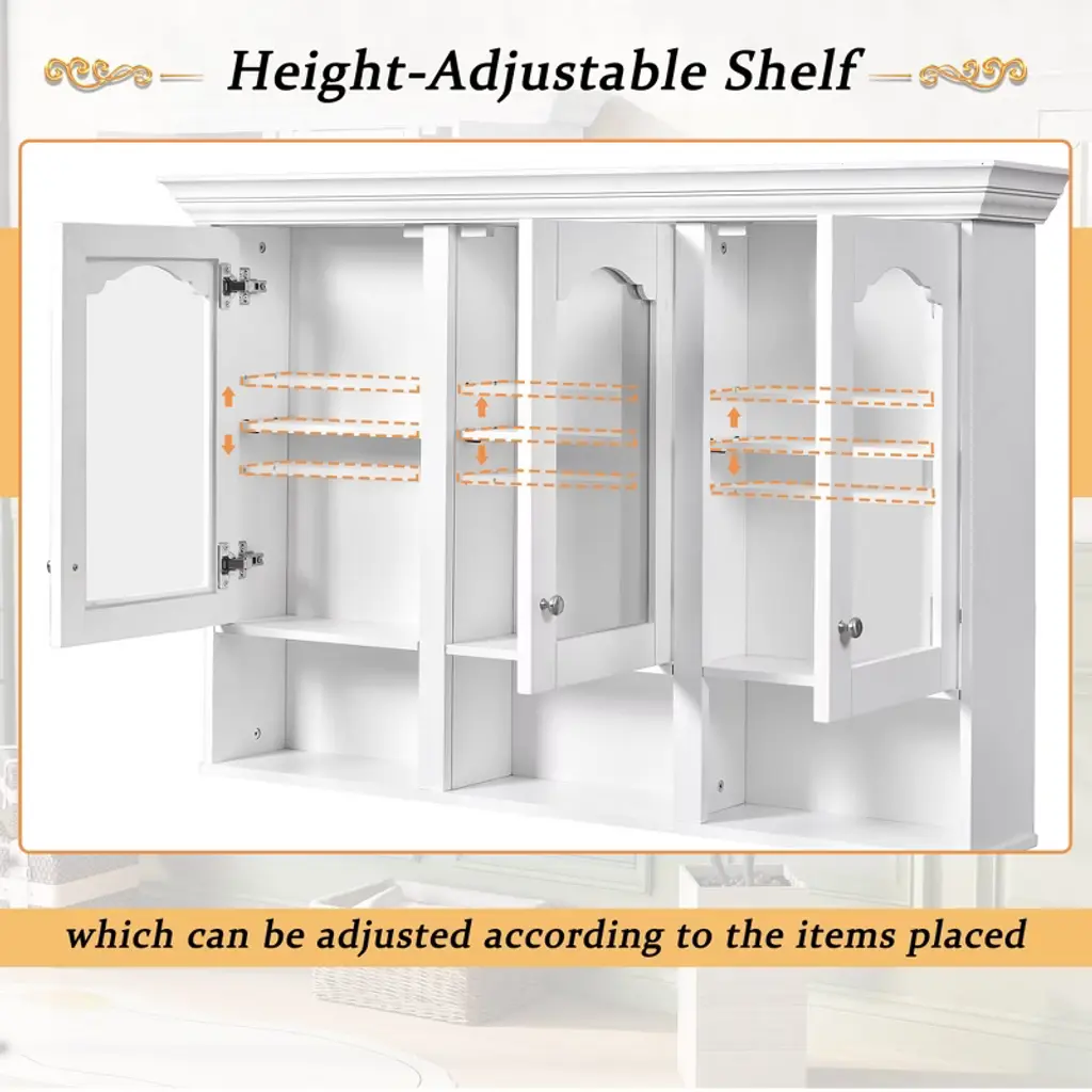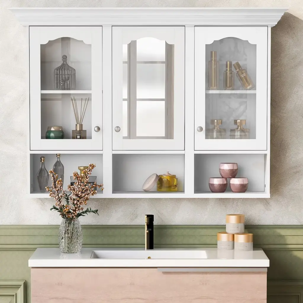 Moepisy Wall Mounted Bathroom Cabinet With Mirror, Cabinet With 3 Adjustable Shelves And 3 Open Compartments For Bathroom