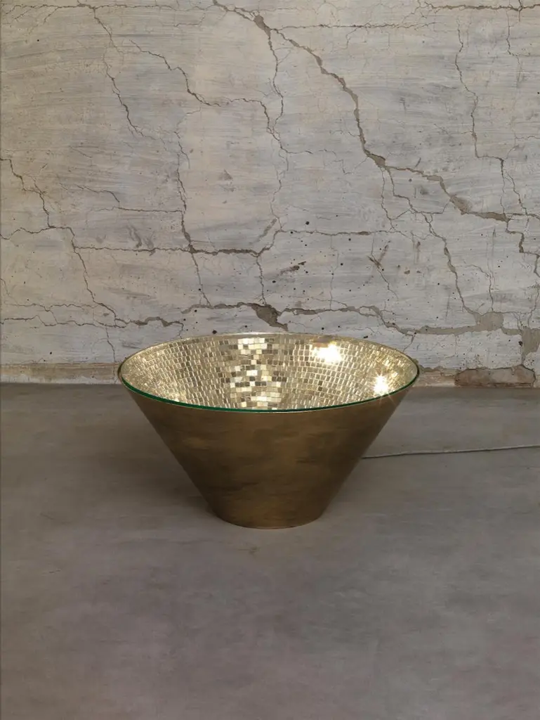 Narciso table by Davide MedriMaterials: mirror mosaic (gold), ironAlso available in silver. Dimensions: Ø50 x H45 cmAlso available in Ø60 x H60, Ø80 x H40 cmDavide Medri was born in Cesena on August 7th 1967 and graduated at the Academy of Fine Arts in Ravenna, the Gino Severini State Mosaic Institute and the Albevainer Professional Mosaic School.After various artistic experiences, with the meeting with the Dilmos gallery in 1997, the first furnishing accessories in mirror mosaics were created. Today's portfolio includes, in addition to glass mosaic mirrors: tables, floor lamps, wall lamps and works of art.The manufacture is completely handmade inside the laboratory in Cesena. Every single piece of glass is cut and fixed by hand guaranteeing high quality, each artistic element is unique in its design and can be tailor-made in any size.Davide Medri's works of art have been successful in terms of market, press appreciation and recognition by architects and interior designers in Italy and abroad.