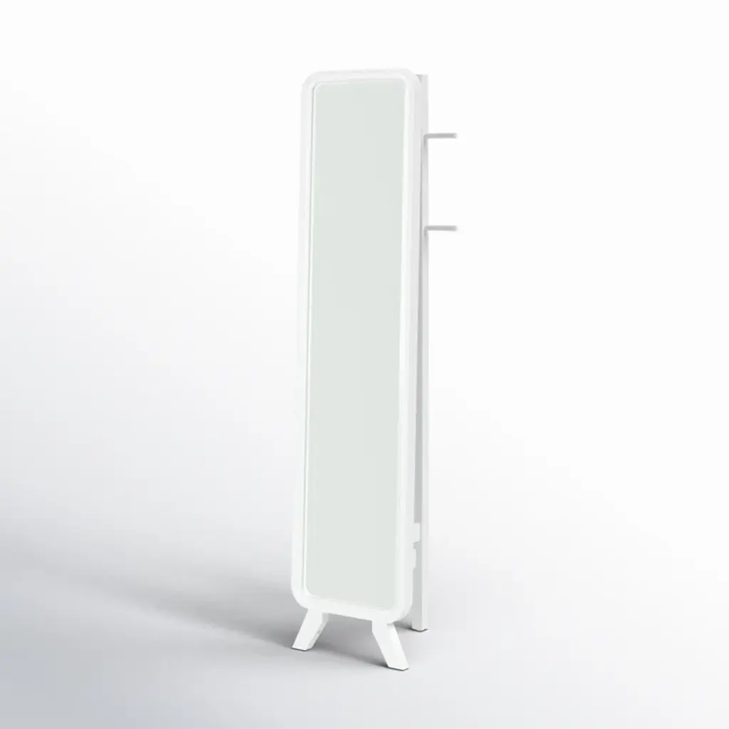 Inspired by modern Scandi style, this full-length mirror showcases a streamlined silhouette + a simple wooden frame. The freestanding design makes installation easy, while its slightly angled stance flatters in selfies. Three sturdy pegs offer space to drape clothes or frequently-worn accessories.