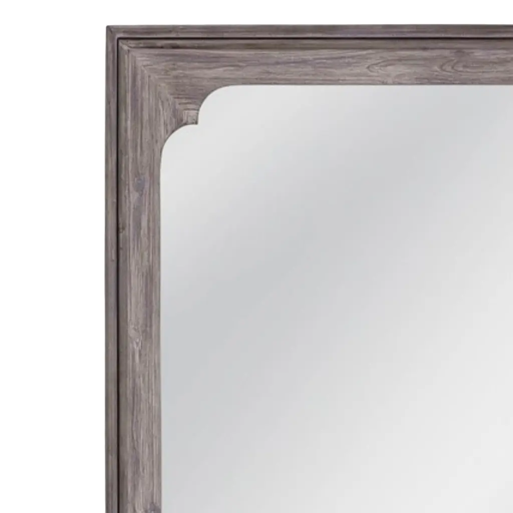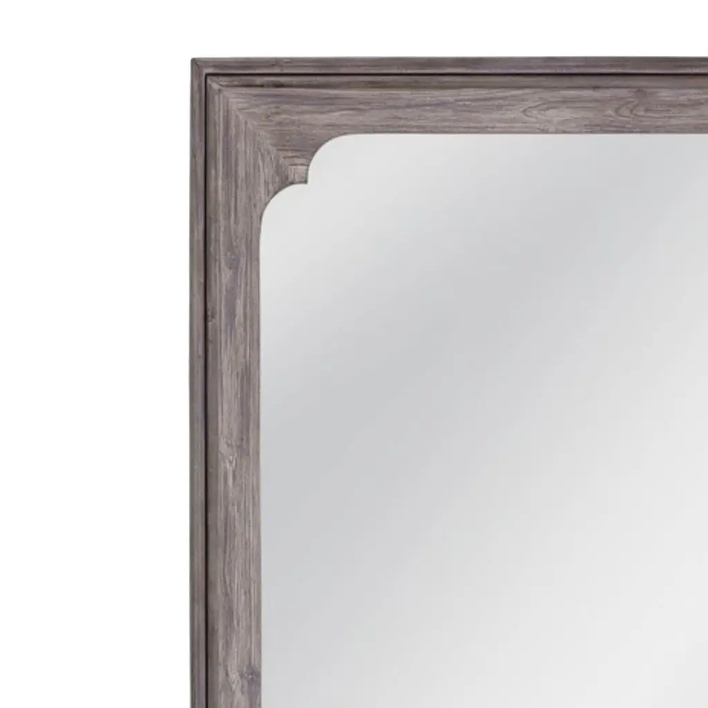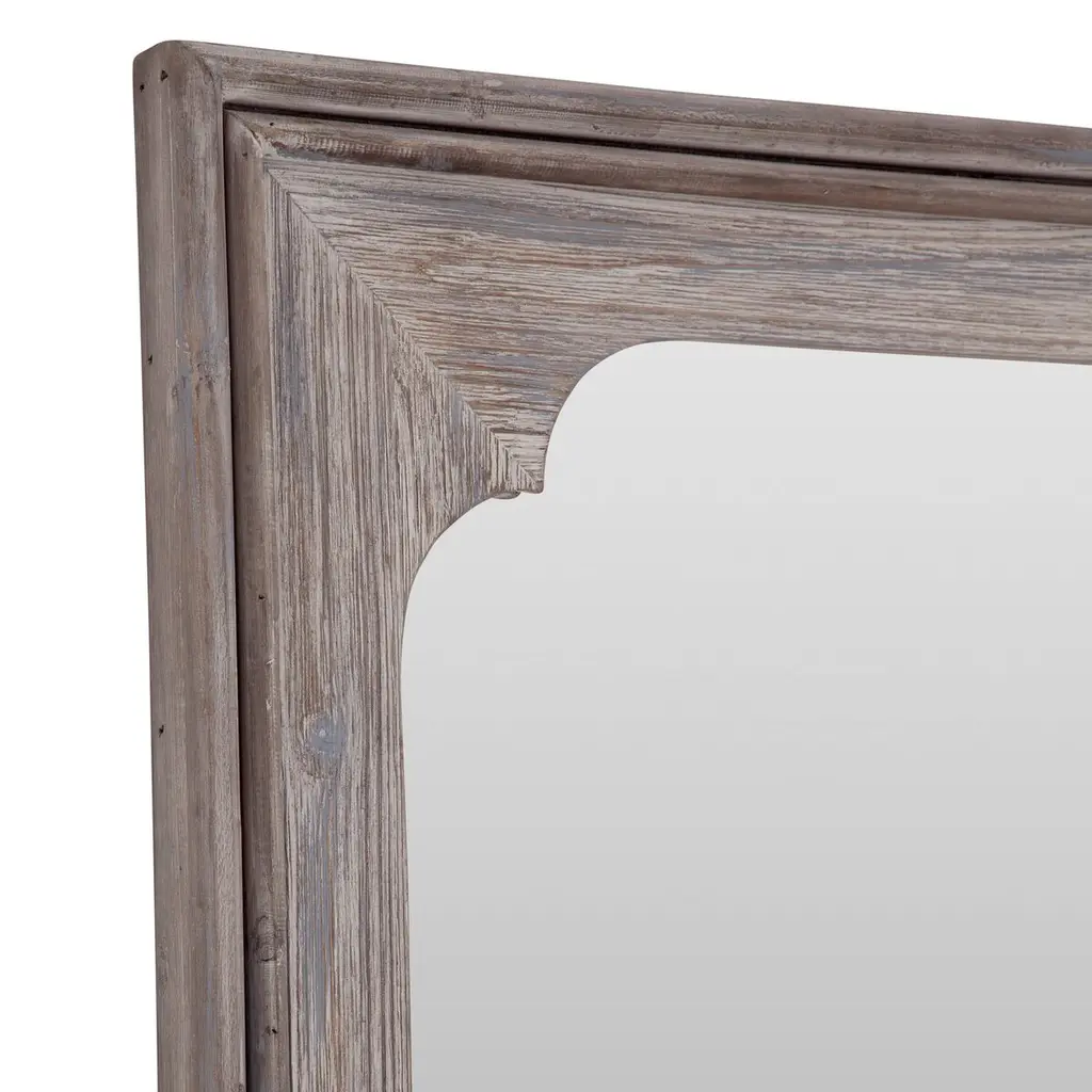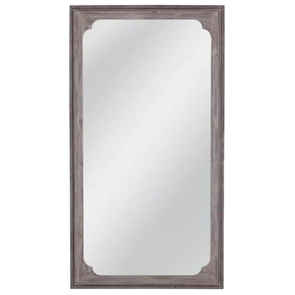 The Nicole Leaner Mirror features a wooden frame with scalloped interior corners. This floor mirror is designed to be leaned vertically against the wall and includes anti-tipping hardware.