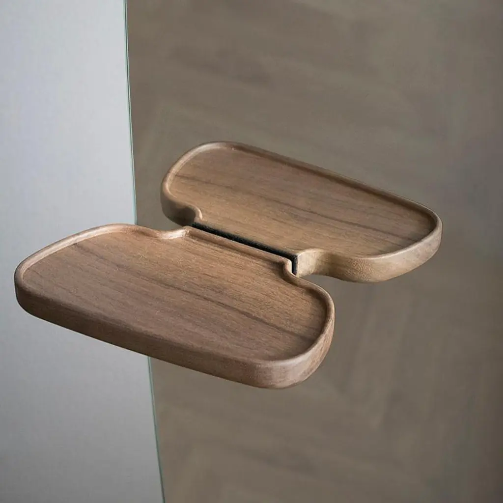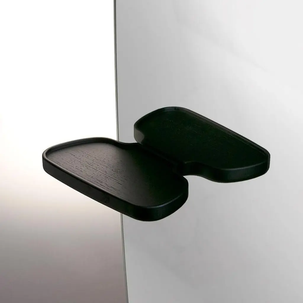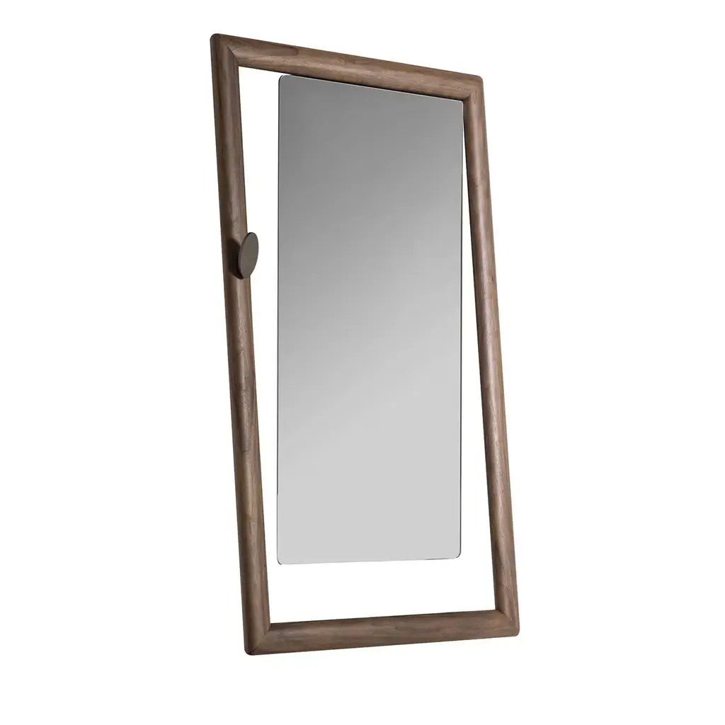 The singularity of this mirror is based on its caring proportions.Two options with floor-standing mirror or wall-mirror; a hand-made natural walnut shelf combines the softness lines of the mirror.Available in WalnutBlack Stained Ash