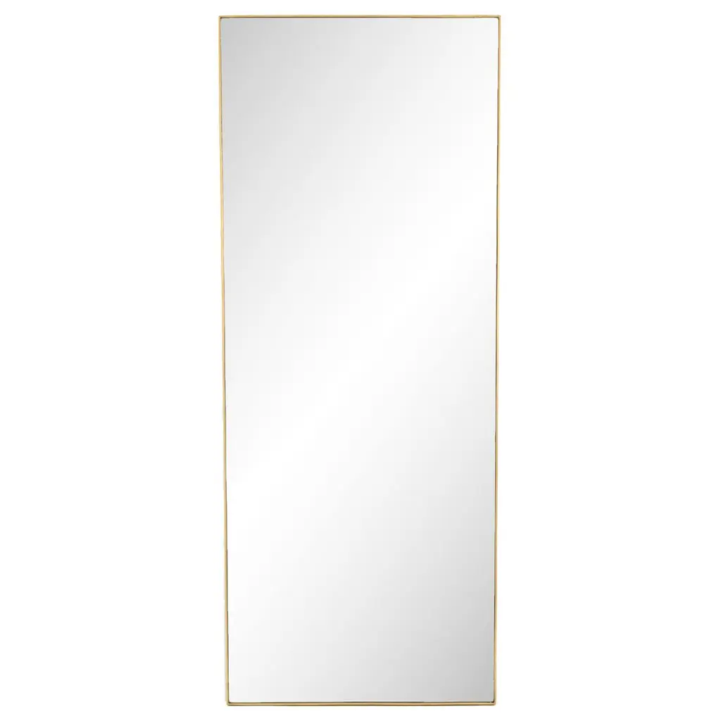 Grace on the edge of modernity. Rectangular stainless steel takes on a polished brass tone to let clean, mirrored glass speak for itself. Open any space in one easy lean, with the added option of hanging vertically or horizontally.