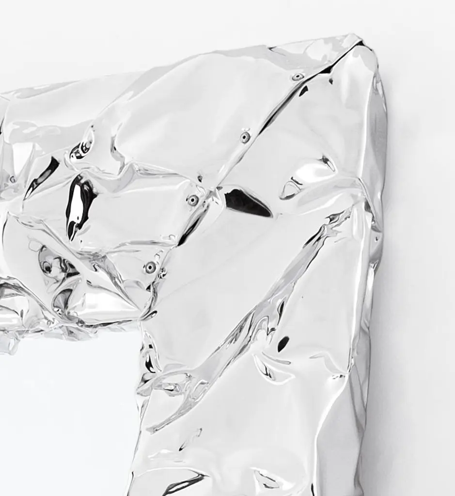The thick frame of this mirror that recalls the effect of creased paper or aluminium foil, will fell like to touch it! The shimmering surface of Tab.u mirror gives an impression to be soft and extremely malleable, but to the touch it reveals its true nature of solid aluminium carved by hand. The mirrors of the Tab.u collection, like all the other items included in the collection (the famous stools, as well as the hanging lamps and the tables) are pieces that get noticed also thanks to the finishes in which they are made - chrome aluminum and mirrored gold. Those mirrors can give a unique touch to the most anonymous environments, no matter if classic or modern.The mirrors are available in five different sizes and two shapes and they are also versatile in use. The rectangular versions can be hung on the wall or laid on the floor, as well as being arranged horizontally or vertically, according to needs and preferences. They are suitable for all the spaces, from the entrance to the living room, the bedroom or the bathroom, and also in a walk-in closet.