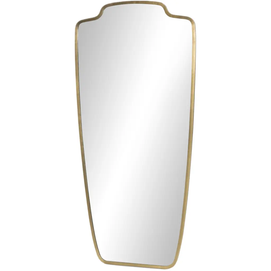 The Oralynn Mirror brings an Art Deco look to your space with its oversized design inspired by the shape of shields. Its iron frame, which slightly tapers at the bottom, is finished in an antique brass, making it a sophisticated addition to any room, from the bedroom to the entryway.