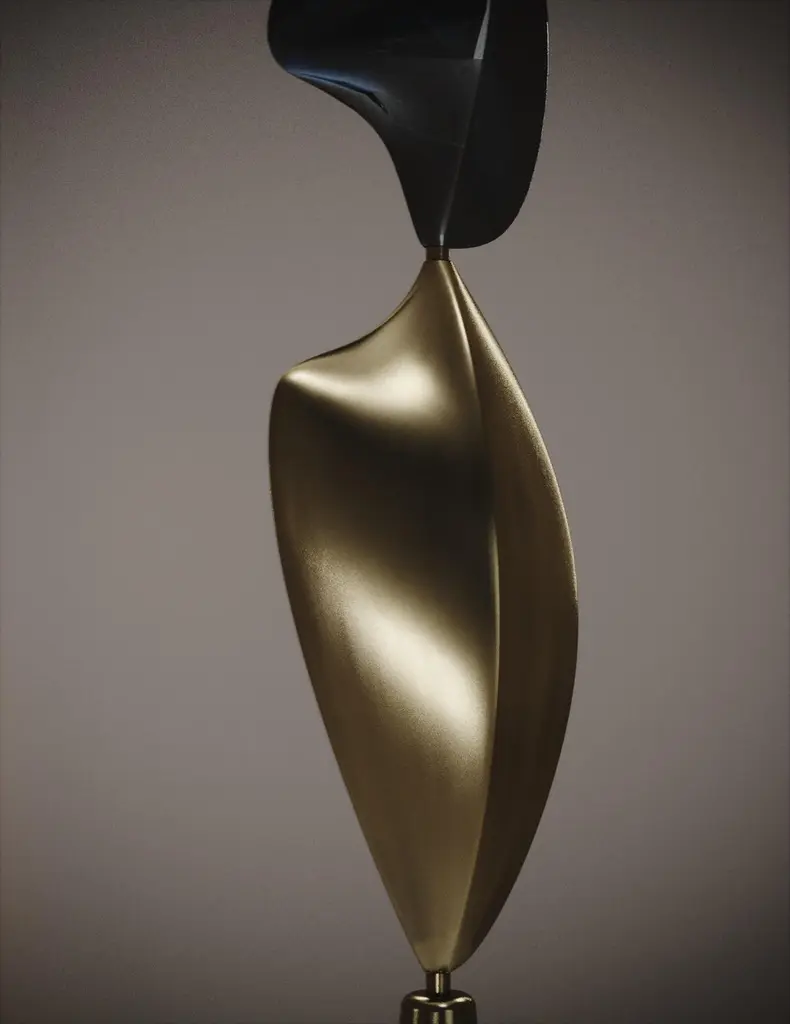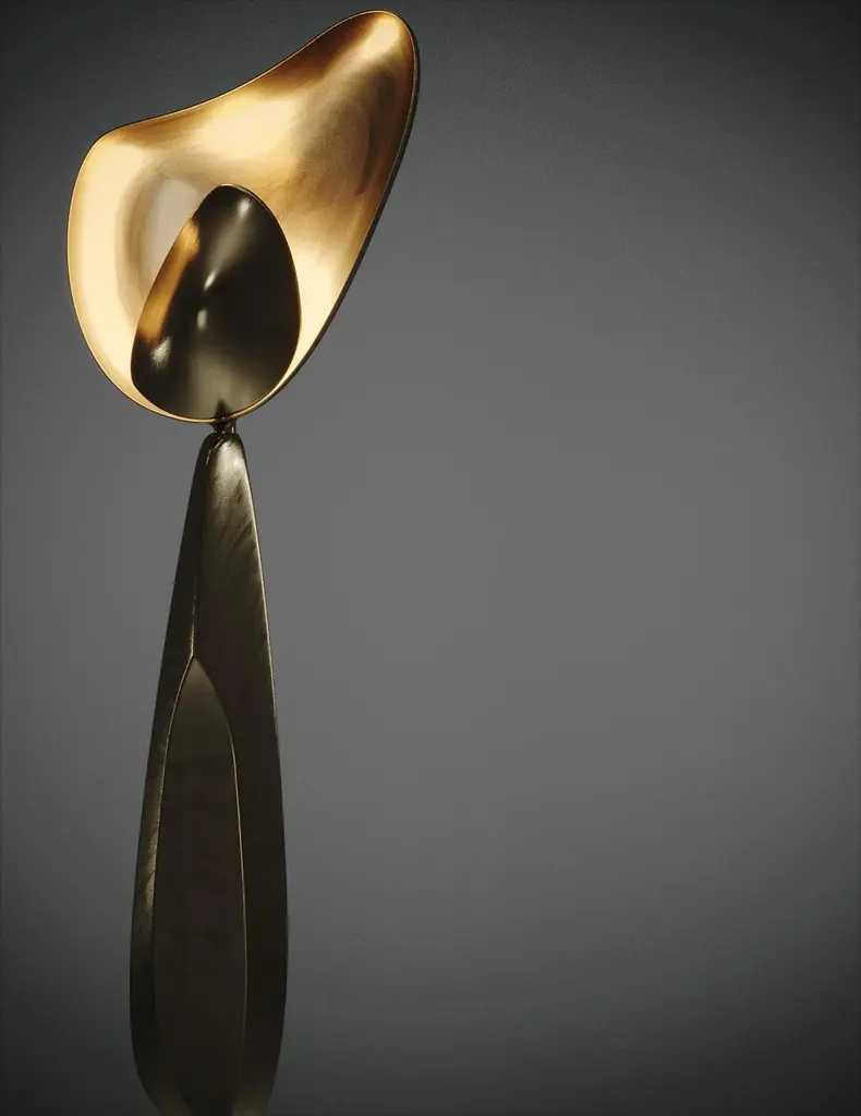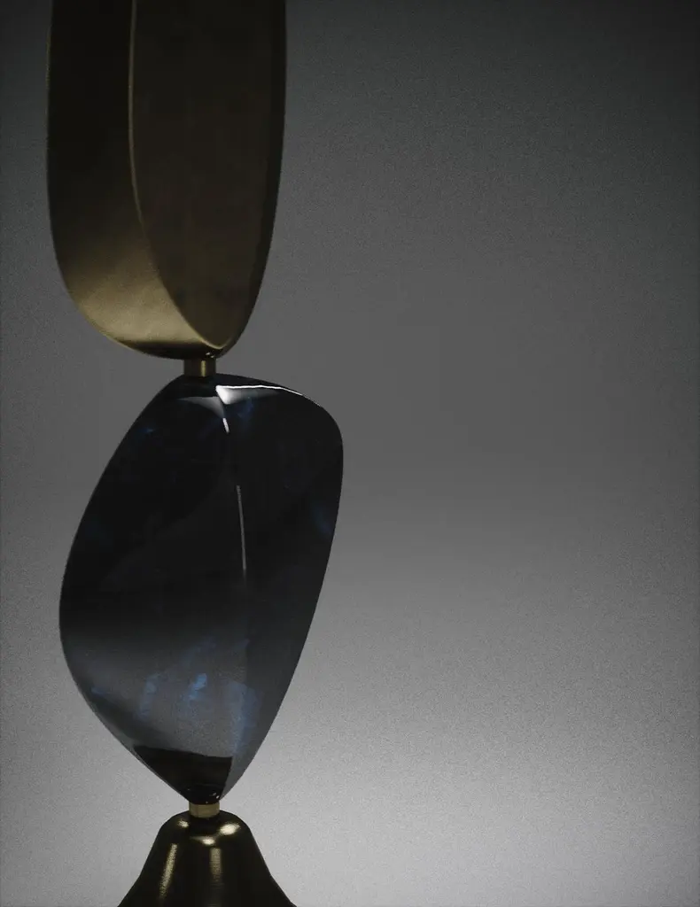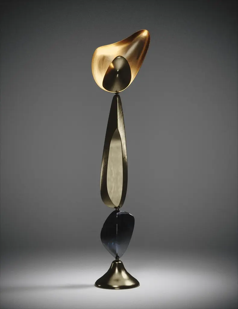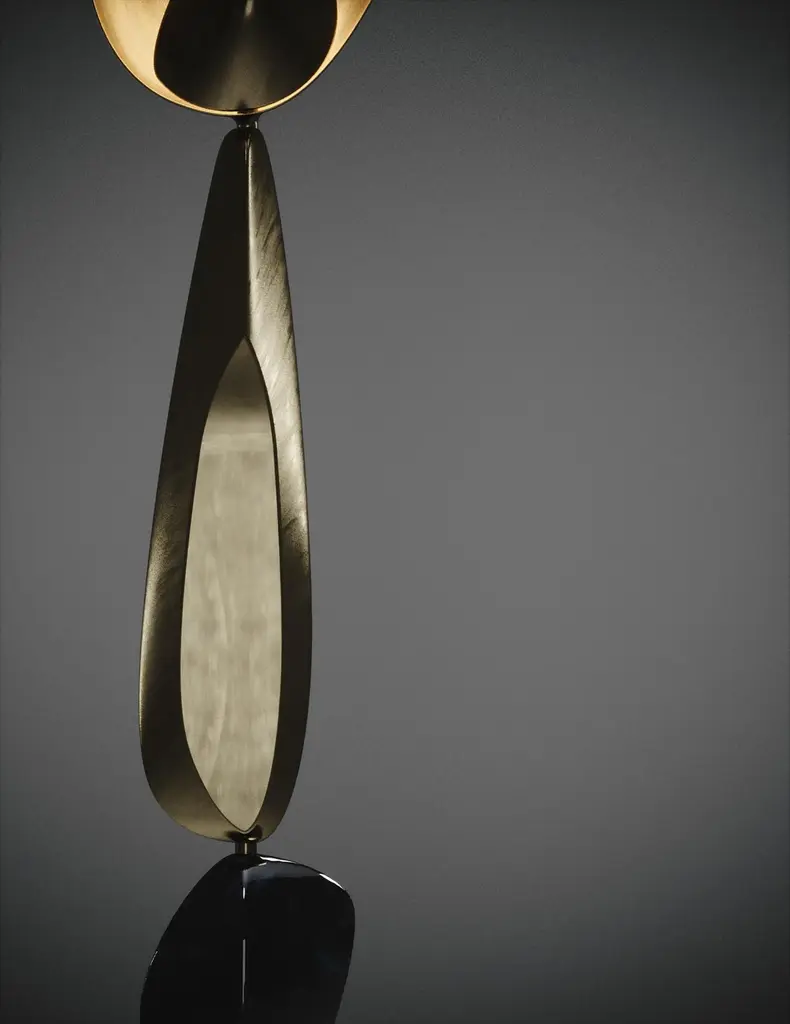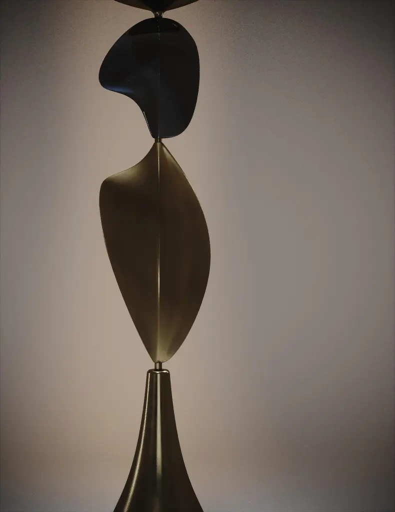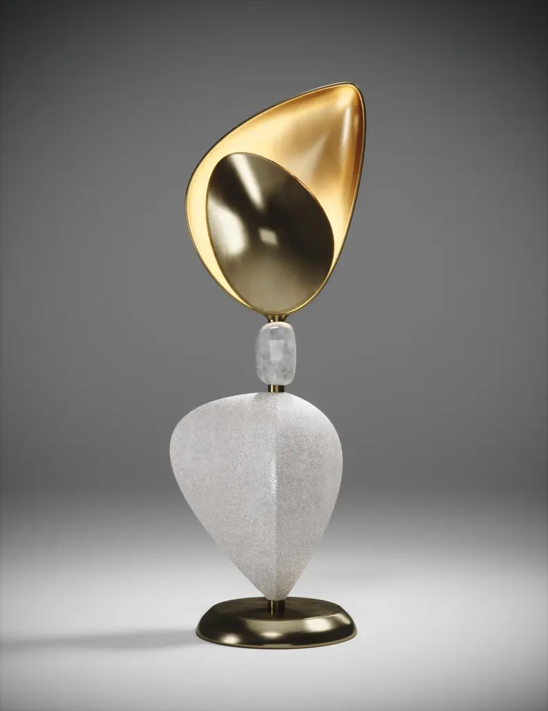 The Paris based label has distinguished themselves since their launch, with their iconic use of shagreen mixed with brass and other exotic materials. All furniture is handcrafted by skilled artisans, ultimately making each piece unique, designed in Paris and produced in the Philippines.The Cosmo sky and Cosmo moon floor lamps by Kifu Paris are whimsical and sculptural pieces, inlaid in bronze-patina brass and each with a beautiful blue pen shell inlaid piece. The amorphous shapes are an abstract and poetic reinterpretation of a star-filled cosmic sky. Sold individually as well, see separate listings. This piece is a part of the Cosmo II Capsule, see images at end of slide. This piece is designed by Kifu Augousti, the daughter of Ria and Yiouri Augousti.All shagreen pieces are hand-dyed by artisans.The dimensions of Cosmo sky are 51.3 x 44 x 179.8 cmThe dimensions of Cosmo moon are 35 x 26.5 x 150 cmAll Kifu Paris pieces are handmade by artisans, ultimately making each piece unique. Custom color or sizing available on request. Wipe clean with soft dry cloth.Although inspired by her parents, her collection of home accessories and furniture is a distinct identity of its own. Kifu uses handmade techniques of elaborate inlay patterns of shagreen, shells, semi-precious stones, materials she experienced as a child growing up in her parent’s studio, but interpreted in a younger quirkier way reflecting her youth. From her "jewelry inspired knobs" on decorative boxes, gold bar boxes and an extravagant inlay pattern mix of shagreen and shell inspired by galactic constellations, as seen on her enormous round mirror is refreshing to see. Kifu embodies whimsical elements throughout her collection and is not afraid to be daring and unexpected in her approach to design.All shagreen-covered items should be kept out of direct sunlight, color variants may occur on the stingray and other exotic finishes, but this showcases the Parisian label's commitment to creating authentic luxurious products using natural components.