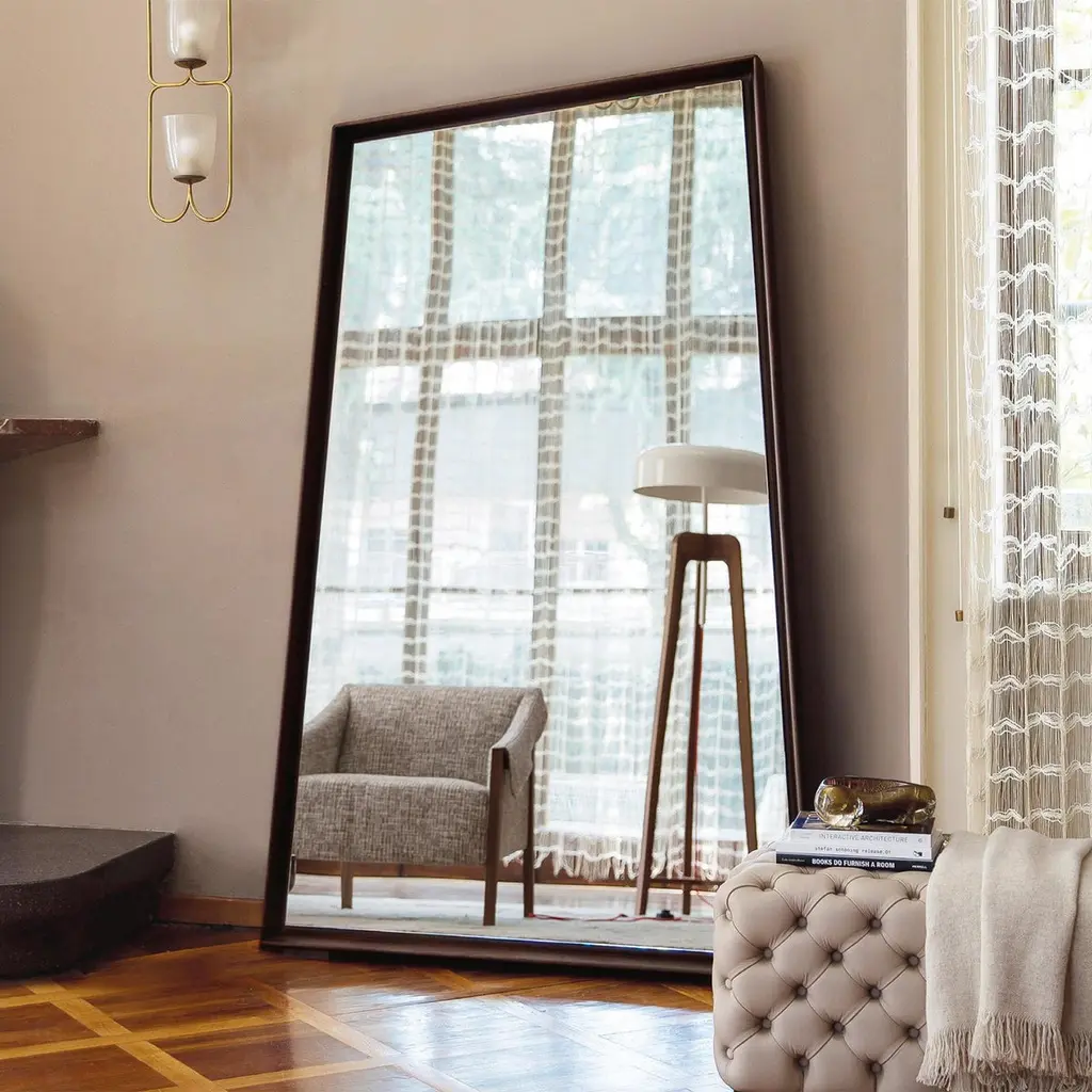 Mirror panel large ash with solid ashwooden frame with mirror glass. Wallmirror or floor mirror.