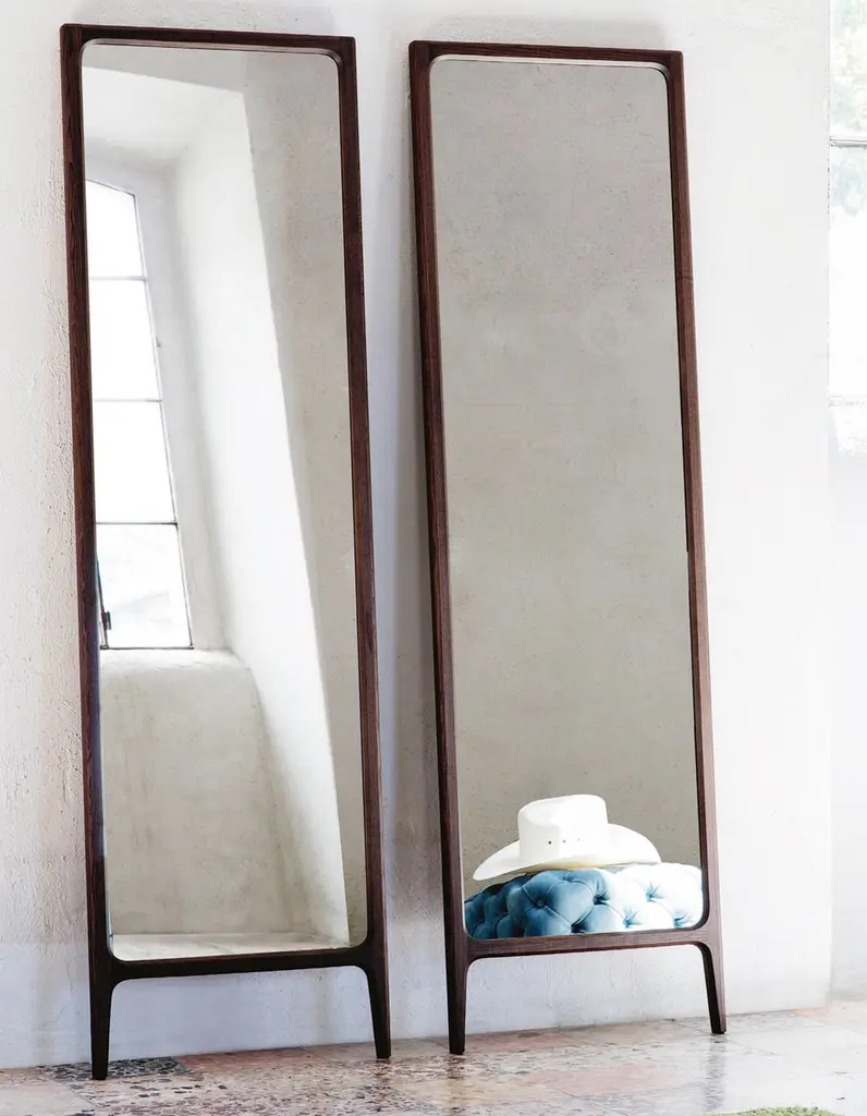 Mirror Panelash floor with framestructure in solid ash wood in naturalash wood finish. With clear mirror glass.Also available in ash in stained cafe orstained wenge or stained walnut finish.