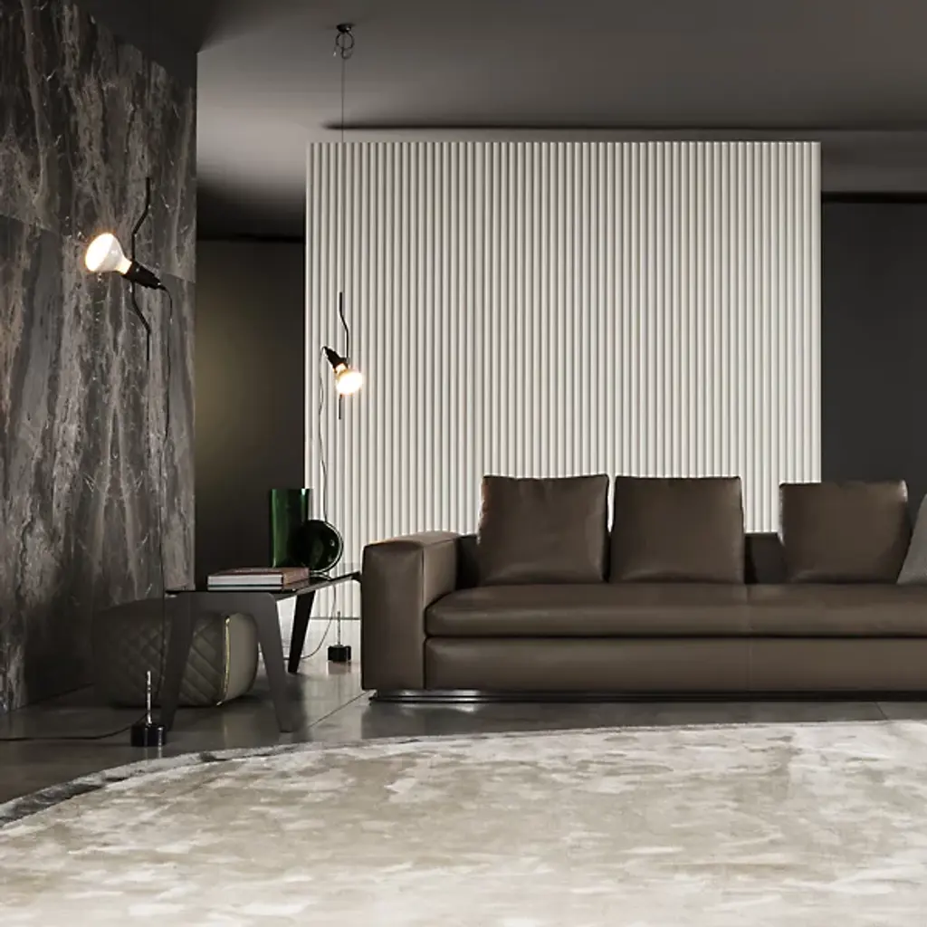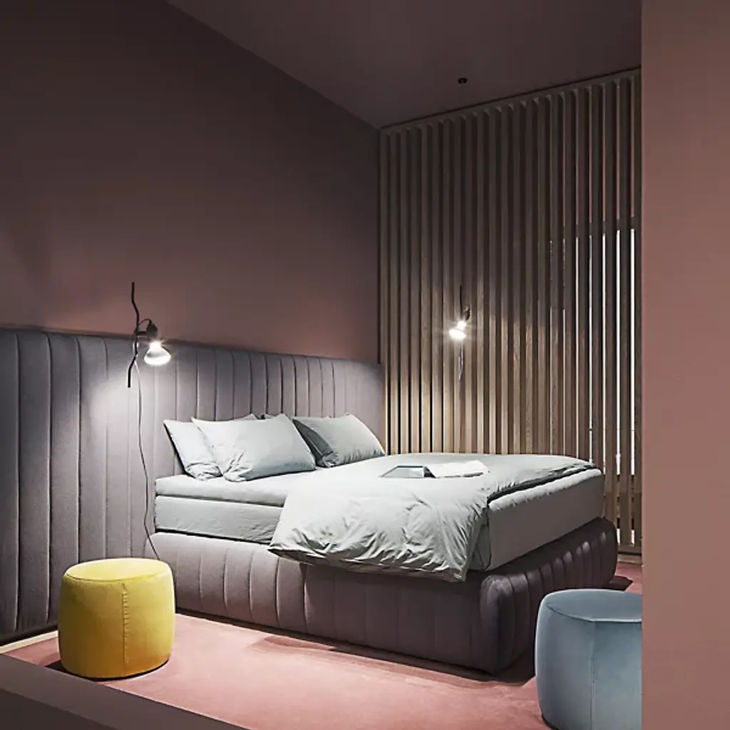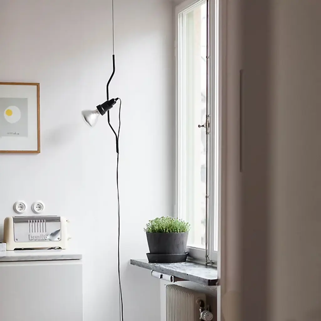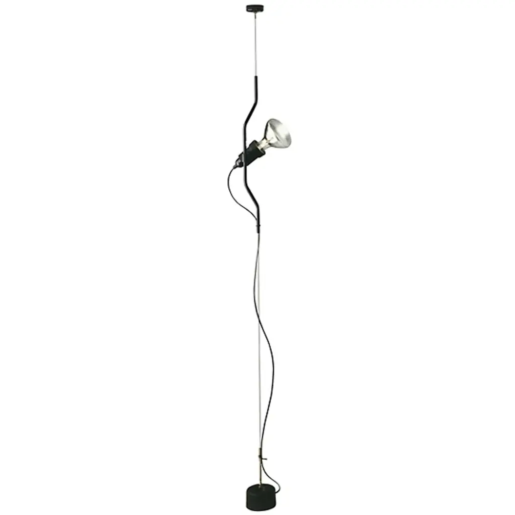 Derived from a 1971 partnership between Achille Castiglioni and Pio Manzù, the Parentesi Suspension Floor Lamp from FLOS takes its name from the parenthesis symbol, mirroring the nickel-plated tube that slides along a floor-to-ceiling steel cable. The cable extends up to 157", offering adjustable height options. The lamp head, made of injection-molded black elastomer, moves vertically along the cable, while a switch provides easy operation. Experience versatile lighting with a touch of industrial chic.