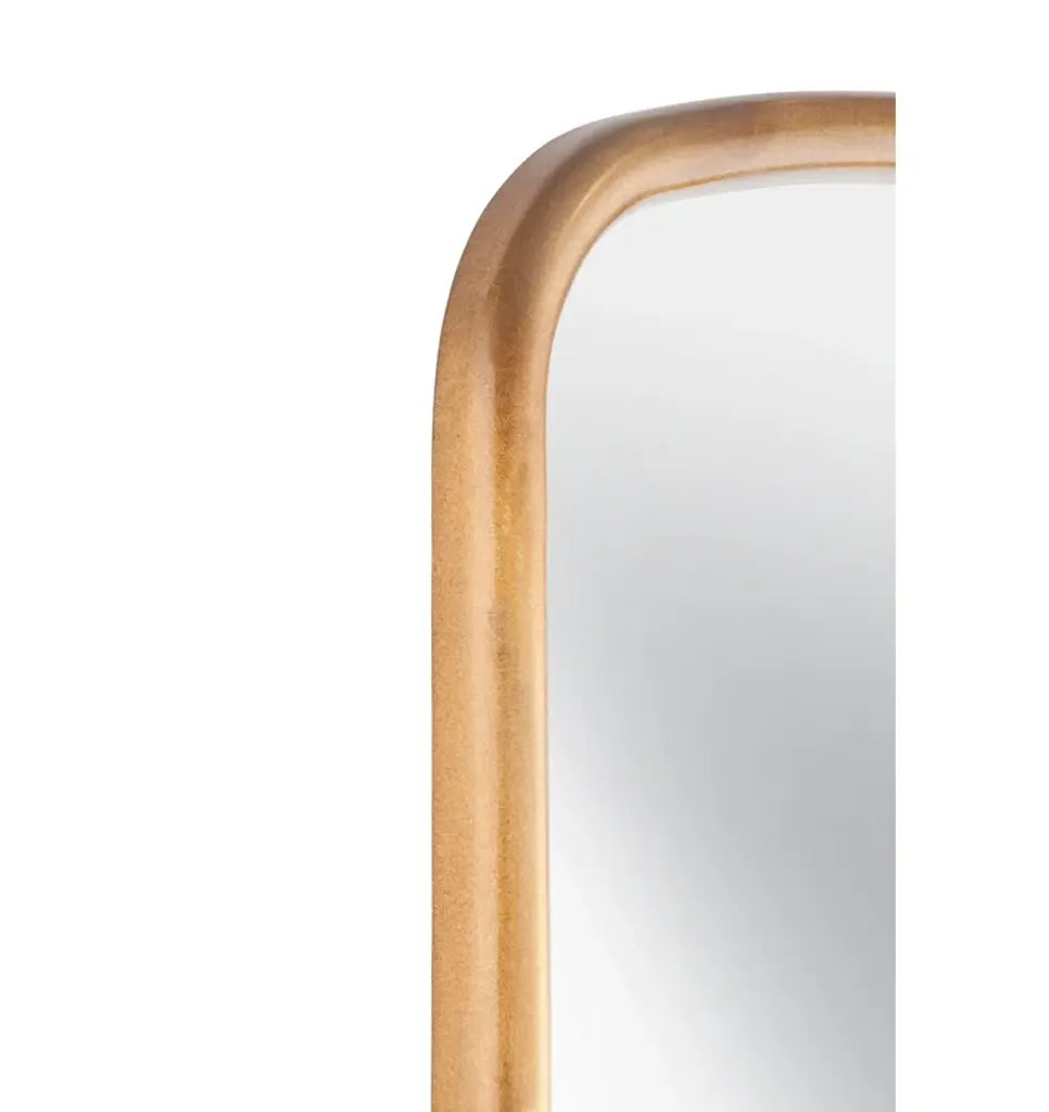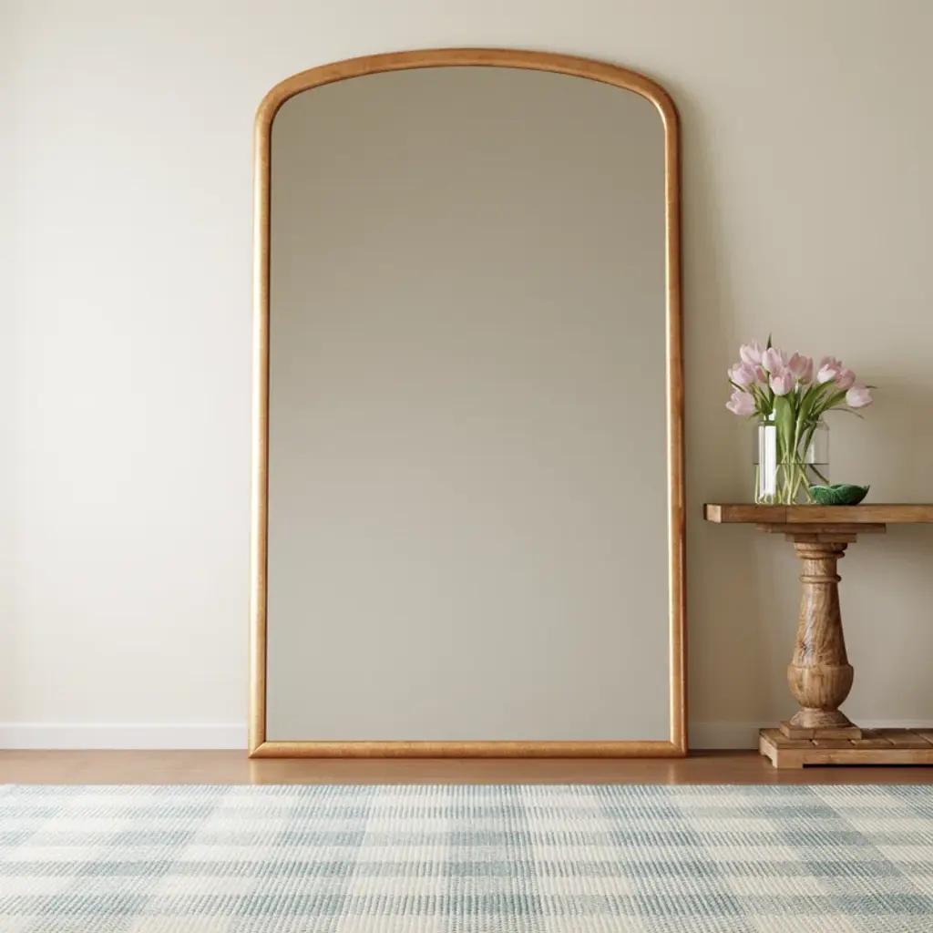This arched floor mirror is one sure way to get a glimpse of your outfit in the bedroom or create the illusion of a larger space. Its frame is crafted from high-quality wood and coated in an antique goldtone finish that's as classic as a place setting. It's super easy to display, too: Simply lean your new mirror against a wall. We love how its high-quality glass center bounces natural light around any room, from the master suite to the entryway.