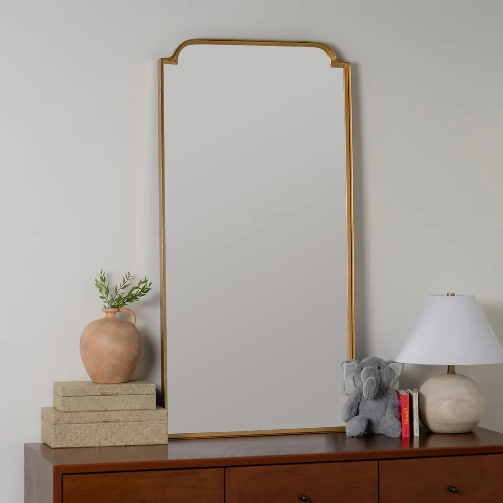 More than four feet high, with a shapely golden frame, this mirror will command attention in an entry, a living room, a bedroom, or anywhere else you place it.
