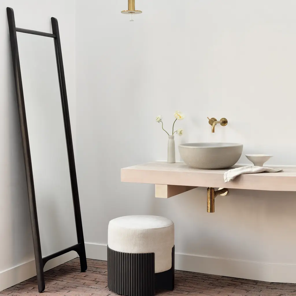 The PI collection honors nature’s design by keeping the strength, curves and lines, as nature intended. Interesting shapes are discovered in this sleek and stylish, polished imperfect finish. Each PI floor mirror is finished by hand to ensure that the individual character of the wood is respected. Designed by Alain van Havre. Features