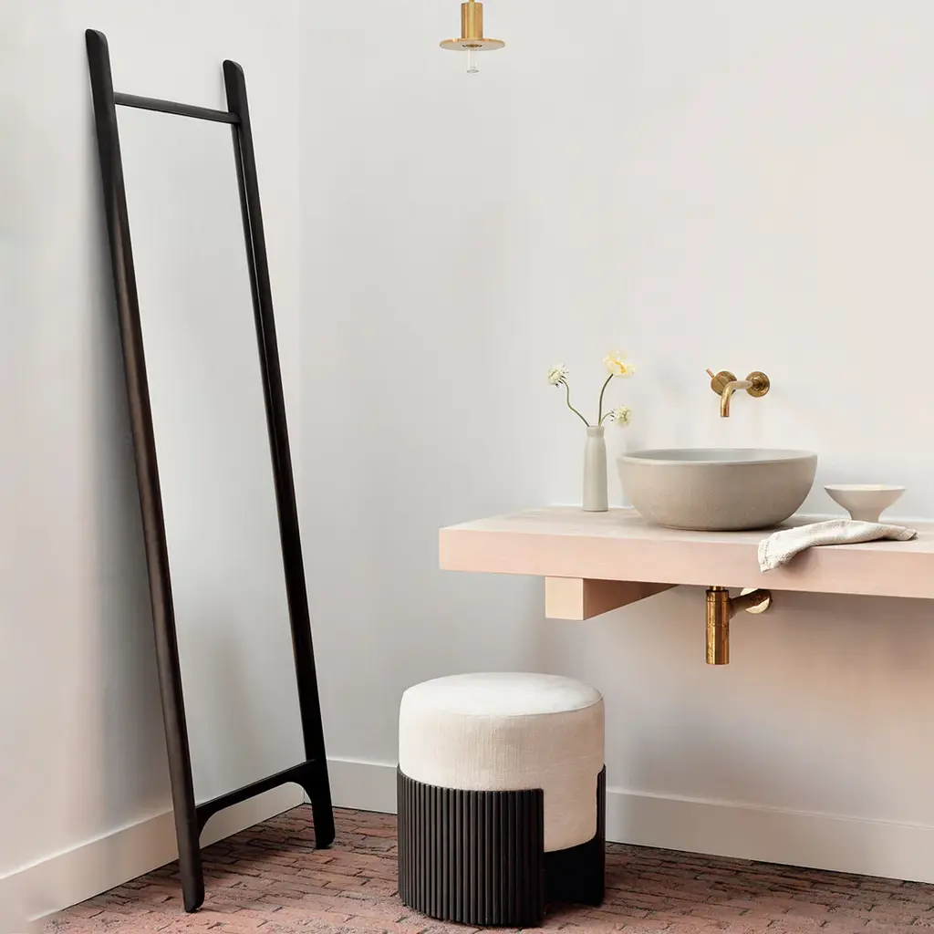 The PI collection honours nature’s design by keeping the strength, curves and lines, as nature intended. Interesting shapes are discovered in this sleek and stylish, polished imperfect finish. Each PI floor mirror is finished by hand to ensure that the individual character of the wood is respected. Designed by Alain van Havre.