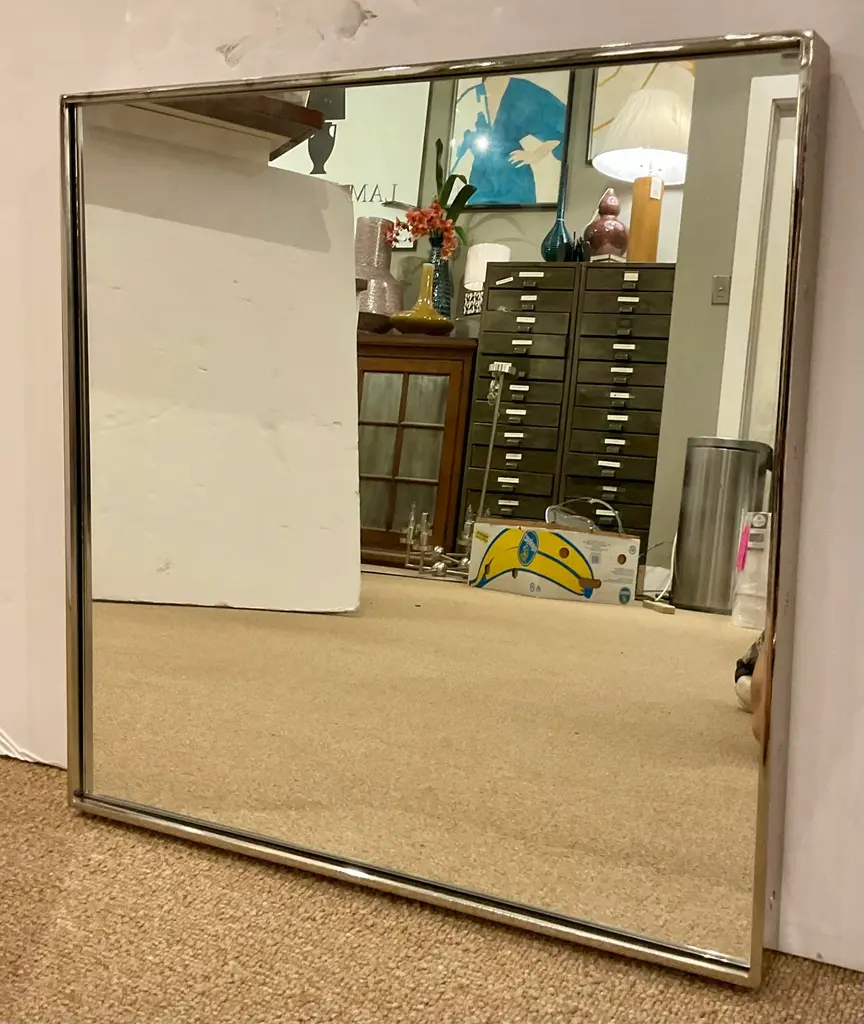 Stylish Port 68 Modern Polished Nickel Wall Mirror, showroom floor sample