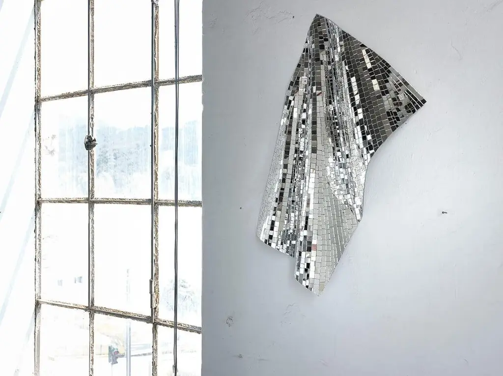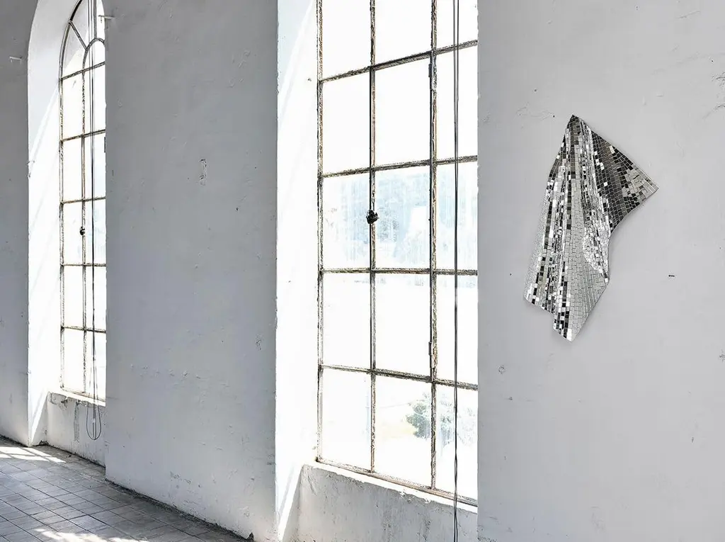 Psyche fabric by Davide MedriMaterials: mirror mosaic (silver)Also available in gold. Dimensions: H 60 x D 43 cm Davide Medri was born in Cesena on August 7th 1967 and graduated at the Academy of Fine Arts in Ravenna, the Gino Severini State Mosaic Institute and the Albevainer Professional Mosaic School.After various artistic experiences, with the meeting with the Dilmos gallery in 1997, the first furnishing accessories in mirror mosaics were created. Today's portfolio includes, in addition to glass mosaic mirrors: tables, floor lamps, wall lamps and works of art.The manufacture is completely handmade inside the laboratory in Cesena. Every single piece of glass is cut and fixed by hand guaranteeing high quality, each artistic element is unique in its design and can be tailor-made in any size.Davide Medri's works of art have been successful in terms of market, press appreciation and recognition by architects and interior designers in Italy and abroad.