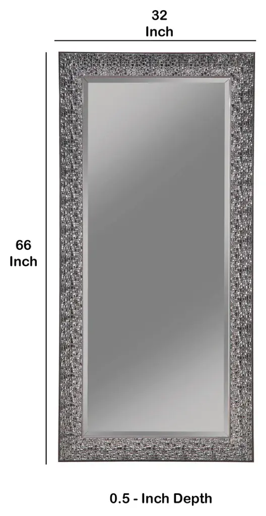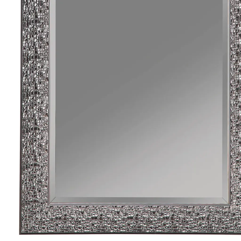 Rectangular Beveled Accent Floor Mirror with Glitter Mosaic Pattern, GrayMore than just a site to check your look, this Accent Floor Mirror will surely add style to your space. It features a rectangular frame with a clear beveled edged mirror and mosaic pattern in a glittering finish that creates a bold, yet textured look. Add this contemporary yet beautifully crafted mirror to expand the perception of space within your bedroom.