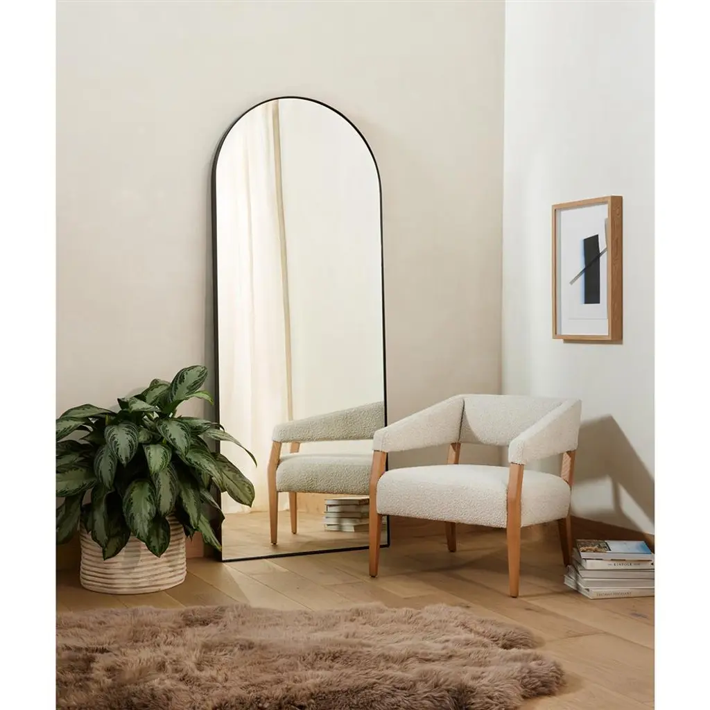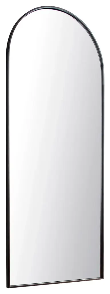 Rinna Industrial Loft Black Iron Frame Clear Glass Arched Floor Mirror