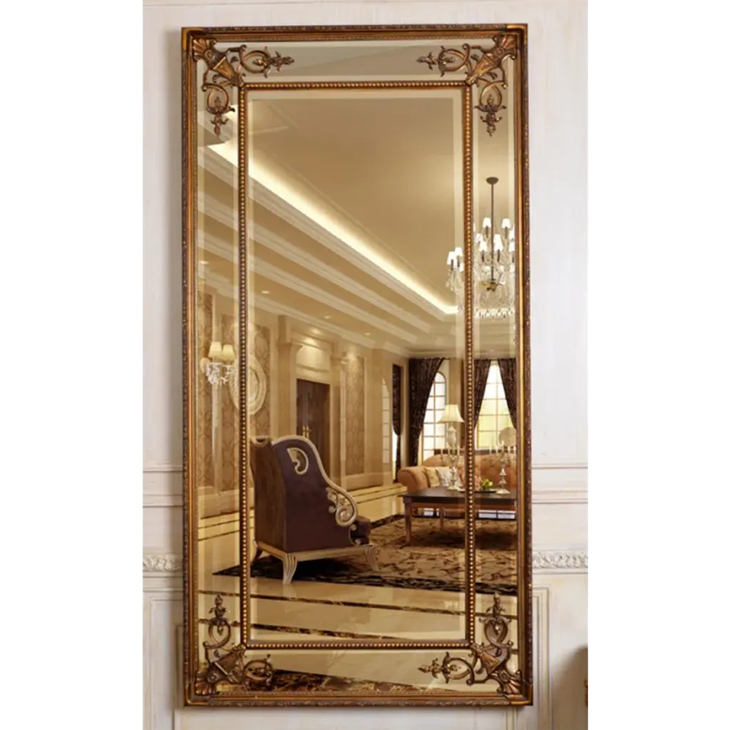 Rococo Full Length Floor Mirror, Antique Gold, Large
