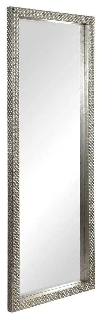 Stylize any room with glam and function. Make this rectangular mirror a staple in a bedroom or main living space. Decorative elements on its wide frame add an elegant accent. Make use of open spaces with an extraordinary, artistic piece. Choose a finish that completes a custom designed space. Features: Includes: One (1) floor mirror Contemporary floor mirror with textural frameFrame features raised mosaic inspired design in silver sparkleClear mirror with beveled edgeAvailable in various color and size optionsColor: SilverDimensions: Floor Mirror: Width: 32.00, Depth: 0.50, Height: 66.00, Weight: 31.00
