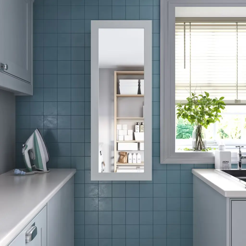 Keep your outfits and your home looking fresh with this wall-mounted ironing board. A fold-out ironing board and interior shelves create an all-in-one station for your ironing needs, while two hooks hang completed items for a smooth, wrinkle-free finish. Add this ironing board cabinet to the laundry room to maximize your small space floorplan, or hang in your mudroom to use the mirror on your way out the door. Save space without sacrificing style with this hide-away ironing board.