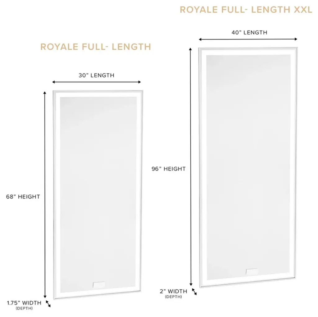 Impressions Vanity Royale full length makeup mirror has straight lines, fashionable colors, and adjustable LED strip lights, which makes it an easy complement to any room decor. This lighted makeup mirror is a perfect choice for a home with tight space since it can maneuver even in tight spaces. This full body mirror will add a touch of grace to your home. The bright LED strip will provide the perfect lighting for any setting. This makeup mirror with lights is designed for both portrait and horizontal orientations around LED strip lights. Built-in on and off light switch on the side.Features:STYLISH HOLLYWOOD MIRROR: This Hollywood vanity mirror with lights has a stylish LED strip light around the mirror that creates the perfect studio quality environment and helps you create the perfect makeup lookFULL LENGTH MIRROR: This frameless standing mirror is large enough for you to see your entire body. It has a perfect size of width 1.75 inches, a height of 68 inches, and a length of 30 inchesMULTIPLE APPLICATION: This lighted makeup mirror has portrait and horizontal orientation, so it''s suitable for your bedroom, living room, locker room, behind the door, corridor, and clothing shopHOMELY DESIGN: This long floor mirror has 3 light color temperatures and built on and off light switch on the side only for your luxury, also it''s slim body allows it to fit any room you desire
