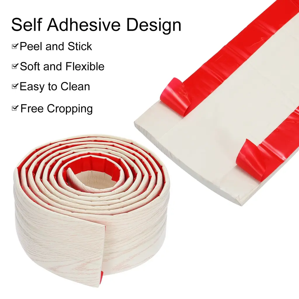 What is this?Wall base flexible baseboard molding trim is a type of soft molding trim that is typically used to decorate the transition between the corners of a room and the floor. It can adapt to curved and bent surfaces, providing more flexible installation options. This type of decorative trim can help beautify interior spaces and is easy to install and clean.What will I get?Flexible Molding TrimColor: White Wood GrainWidth: 92mm / 3.62 InchLength: 3 Meters / 9.8 FeetThickness: 8mm / 0.31 InchMaterial: NBR (Nitrile Butadiene Rubber)In the package of: 1 Pcs Baseboard Molding TrimAre there any advantages of the product?Self Adhesive Design: The flexible molded trim comes with a powerful adhesive backing, making it easy to peel and stick onto surfaces like walls, doors, mirrors, cabinets, and more.Flexible And Durable: The baseboard molding trim is made of durable rubber material, which is soft and elastic, wear resistance, moisture-proof, suitable for use in many environments.Wide Application: The Wall base molding trim is adaptable and can stick to nearly all smooth surfaces including tiles, plastic, metal, glass, wood, and flat walls. This makes it a good choice for fixing uneven floors or irregular walls. It is great for concealing gaps between floors and walls in areas like garages, gyms, living rooms, bathrooms, bedrooms, kitchens, nurseries and more.How to use it?Just peel and stick! It is very easy to install, allowing you to easily decorate and protect the wall base of your living room, bedroom, kitchen, hallway, and garage.What should I notice?Before installation, make sure the location meets the requirements to avoid damaging the wall or other surfaces due to removal of the baseboard molding trim.