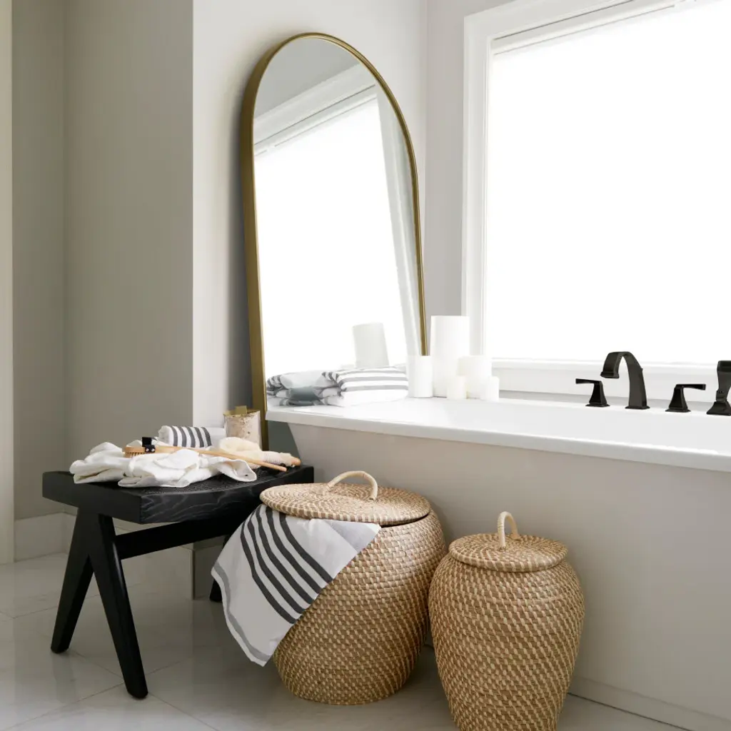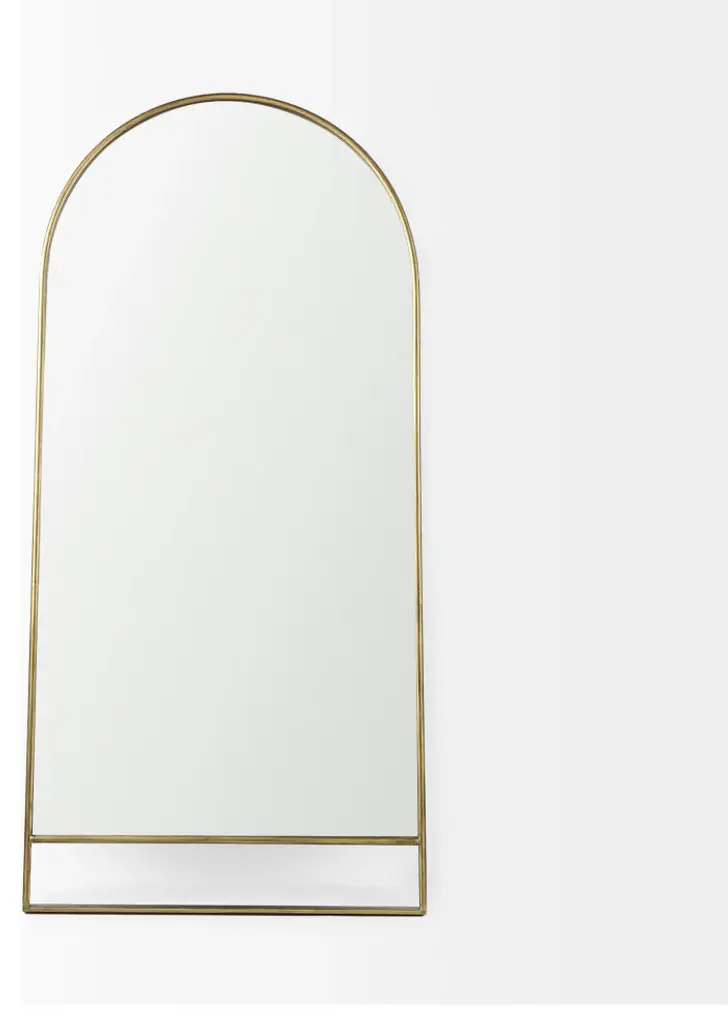 Sadie is a antique-gold metal rounded arch floor mirror, and measures 36.0L x 2.0W x 76.0H.
