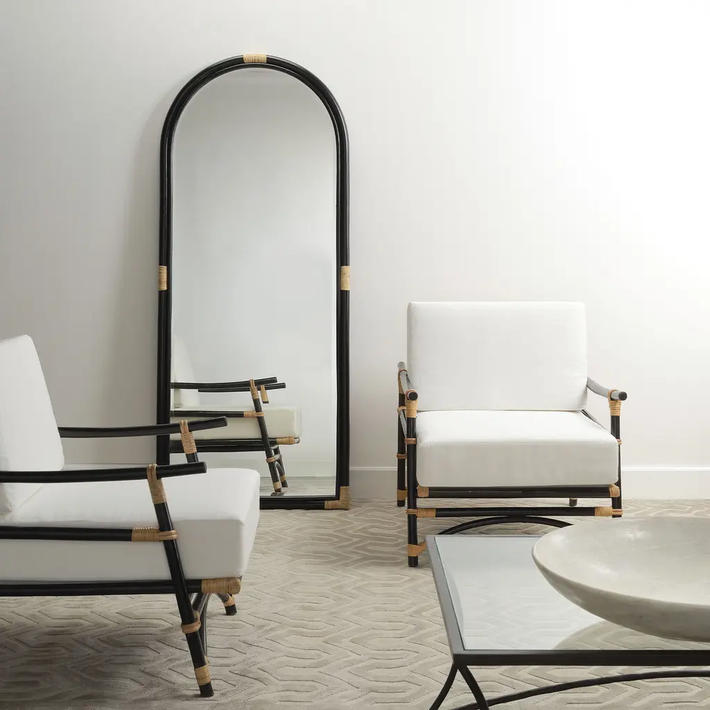 This gently arched, full length floor mirror’s black rattan frame is subtly embellished with decorative notes in natural rattan wrap. It’s beveled mirror, finished back, and striking craftsmanship elevate a simple design into something extraordinary. Lean against the wall in your living area or bedroom; it will open up the room and let you grab a last-minute look at your outfit before you head out into the world.