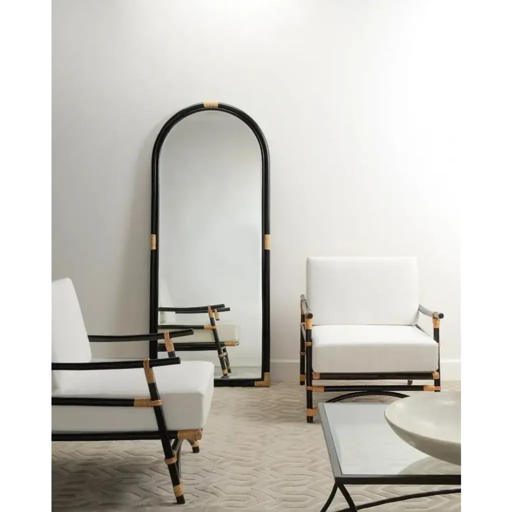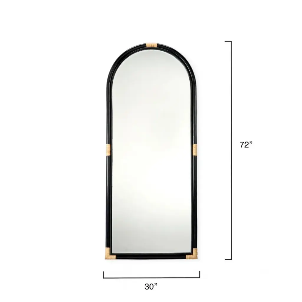 This gently arched, full length floor mirror’s rattan frame is subtly embellished with decorative notes in a contrasting rattan wrap. It’s beveled mirror, finished back, and striking craftsmanship elevate a simple design into something extraordinary. Lean against the wall in your living area or bedroom; it will open up the room and let you grab a last-minute look at your outfit before you head out into the world.