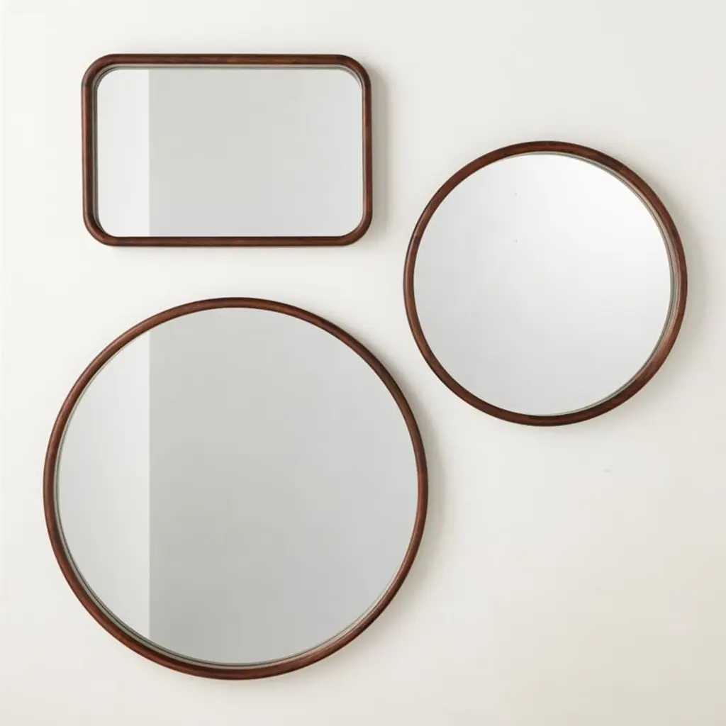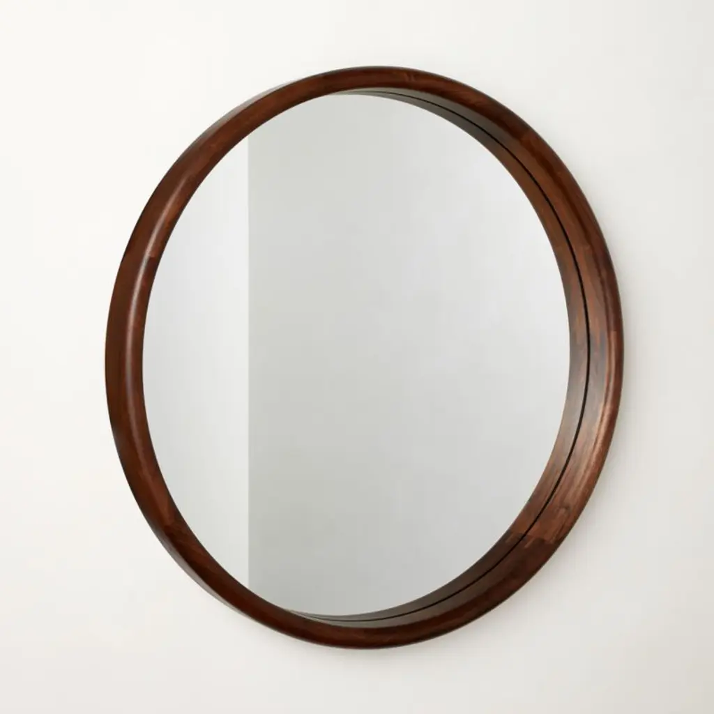 Refined wall mirror is crafted of beautifully grained acacia wood certified sustainable by the Forest Stewardship Council (FSC). The bullnose-edge frame features butterfly joint details, showcasing the piece's exceptional craftsmanship. Designed to hang vertically or horizontally, the mirror lends an organic accent to the entryway or bedroom. Pair with the Saone floor mirror for a modern display. CB2 exclusive.
