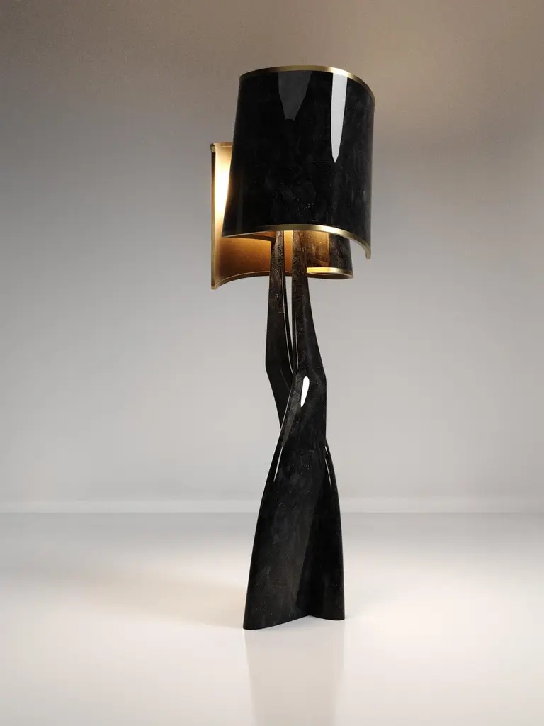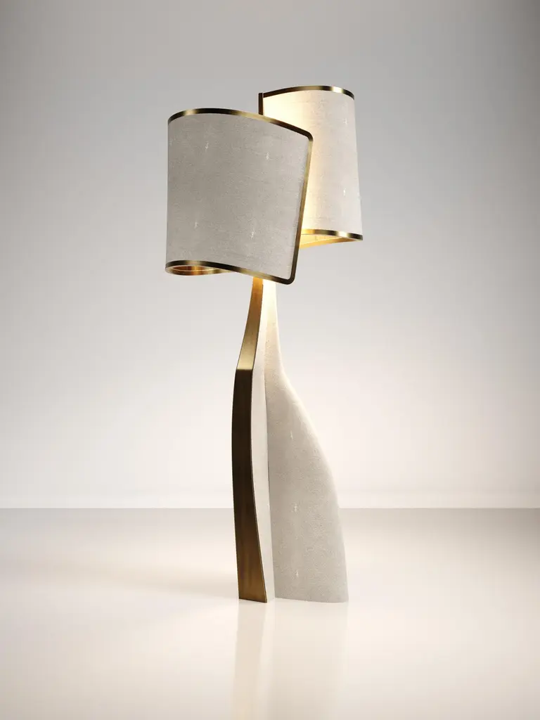 Sculptural Floor Lamp In Shagreen Inlay And Bronze-Patina Brass By Kifu Paris