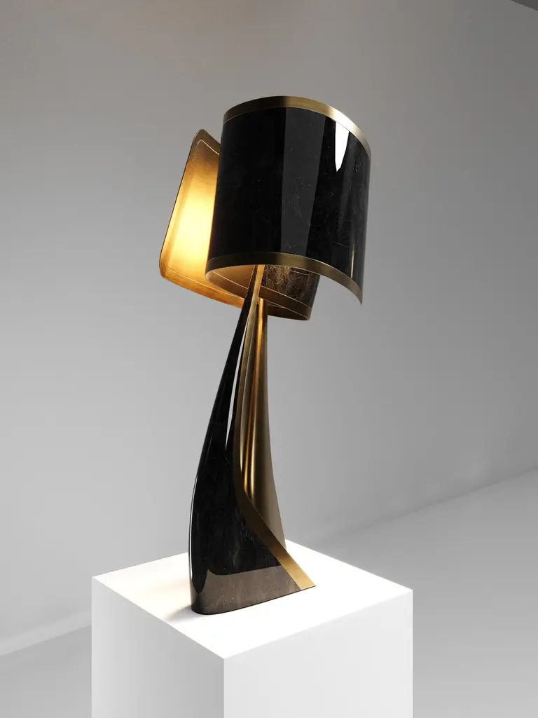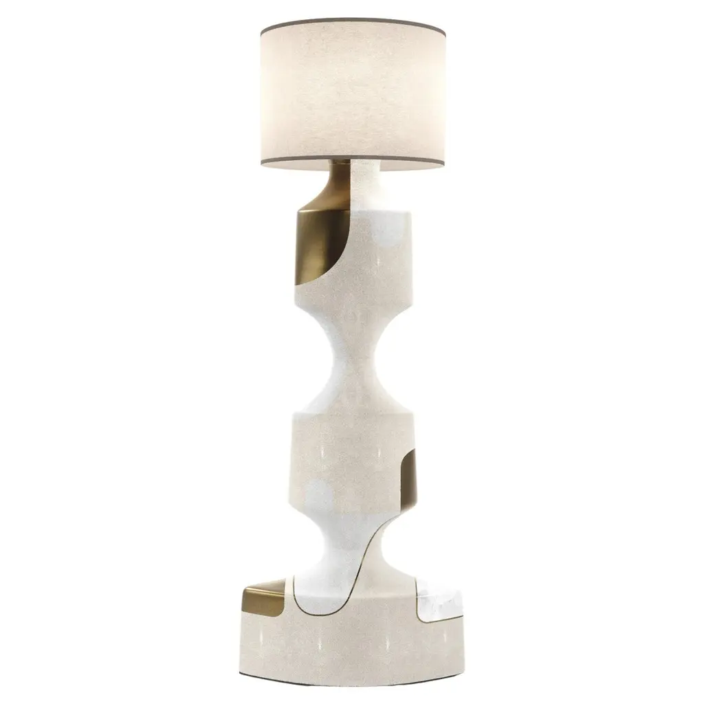 Sculptural Floor Lamp In Shagreen Inlay And Bronze-Patina Brass By Kifu Paris