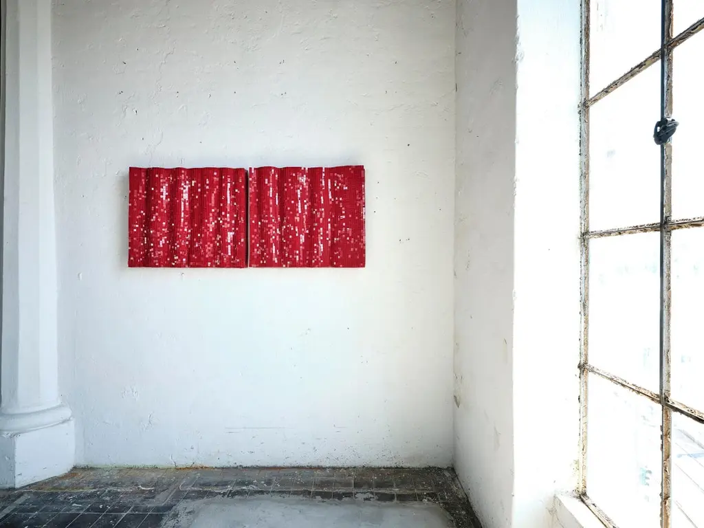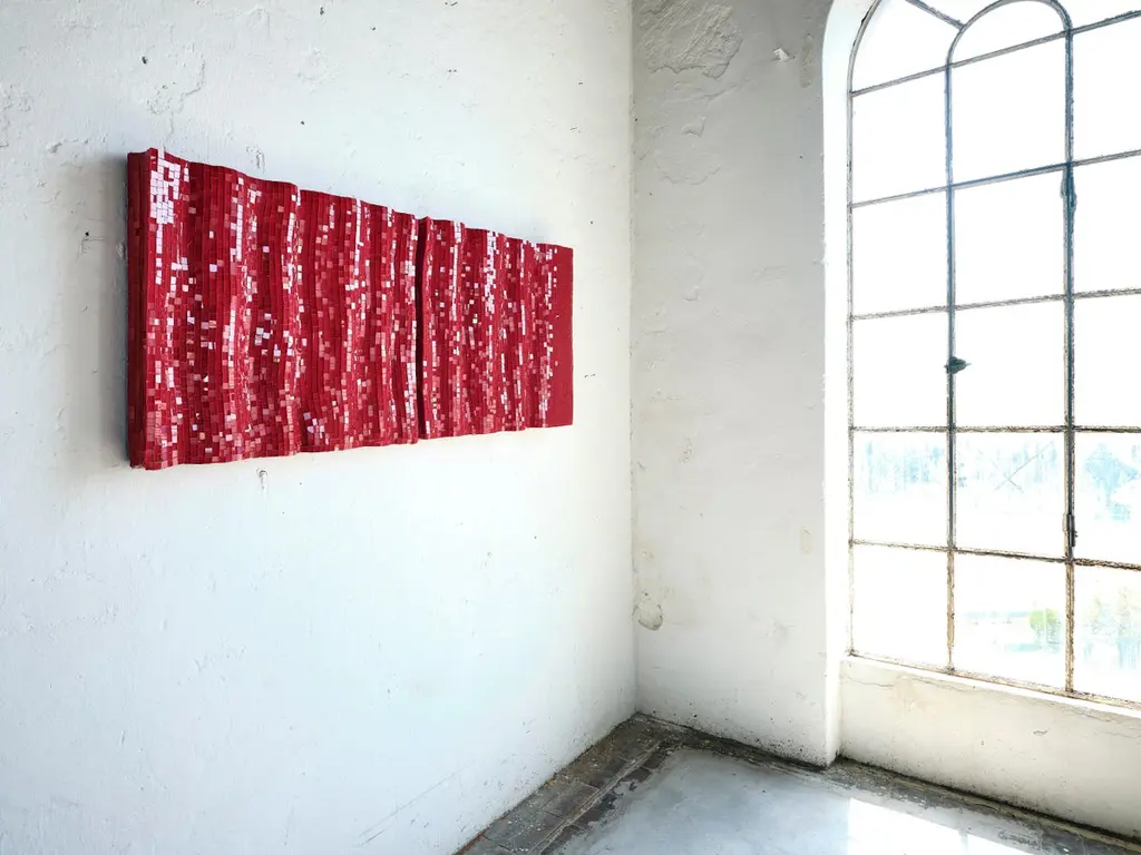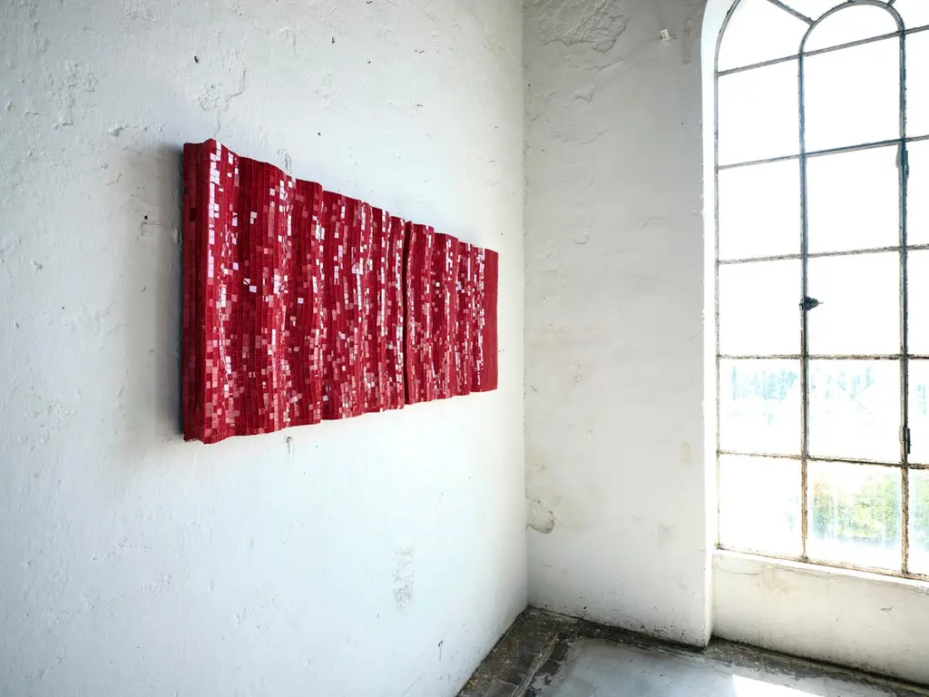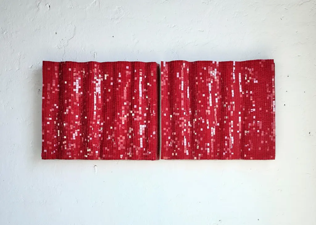 Set Of 2 Modular Decorative Red Glass Mosaic Panels By Davide Medri